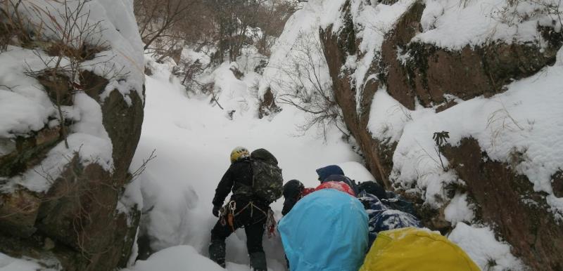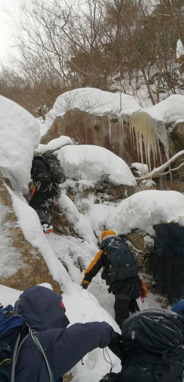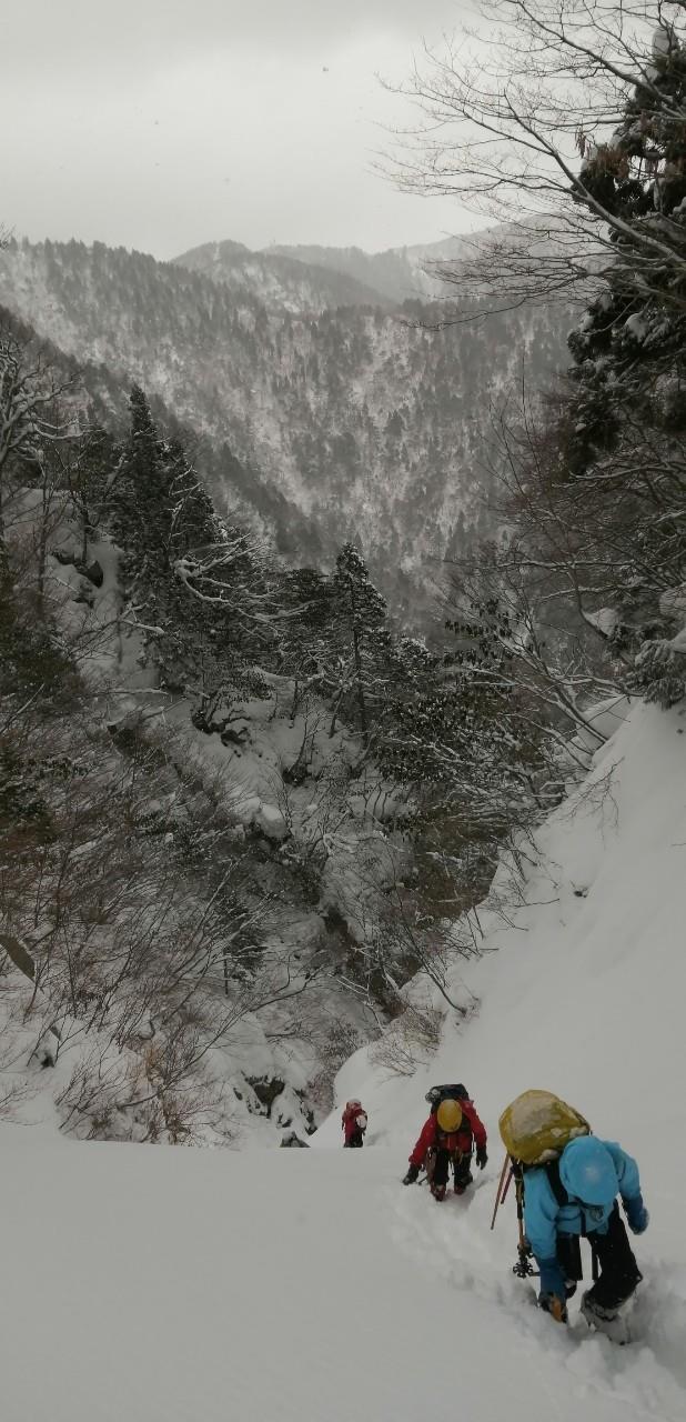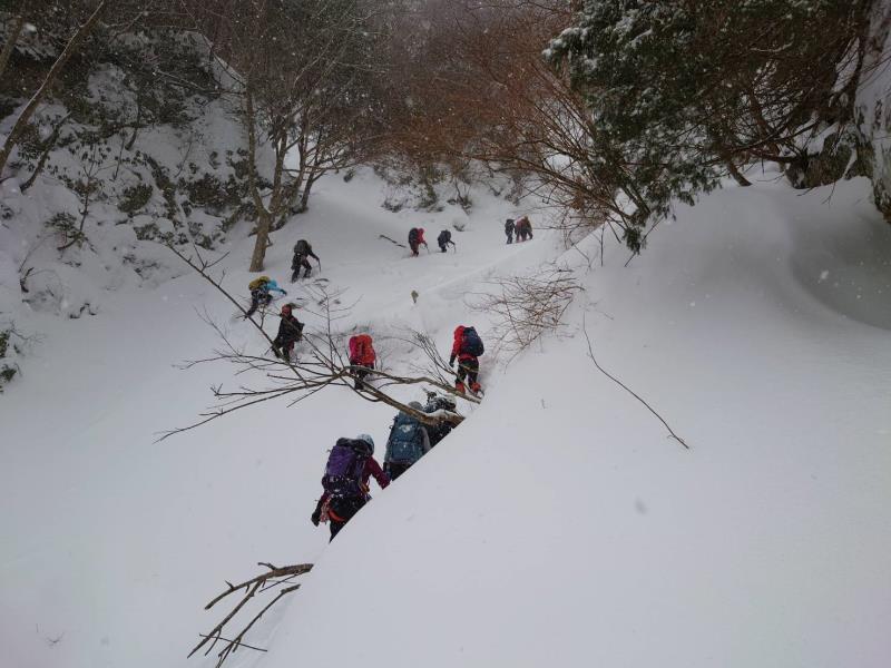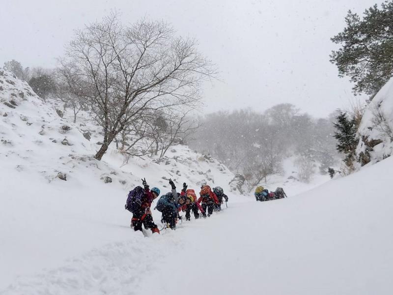 二日目は実践登山で堂満岳北壁第一ルンゼから堂満岳を目指しました。