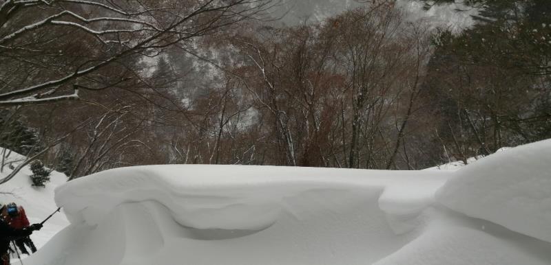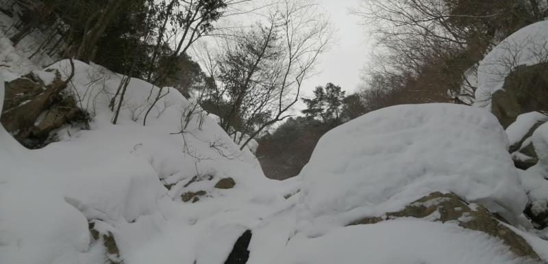 積雪が多く岩はほとんど出ていない状態でしたが、幸運なことにトレースもあり先頭を順番に交代しながら堂満岳山頂へ。金糞峠から青ガレを下って戻りました。
