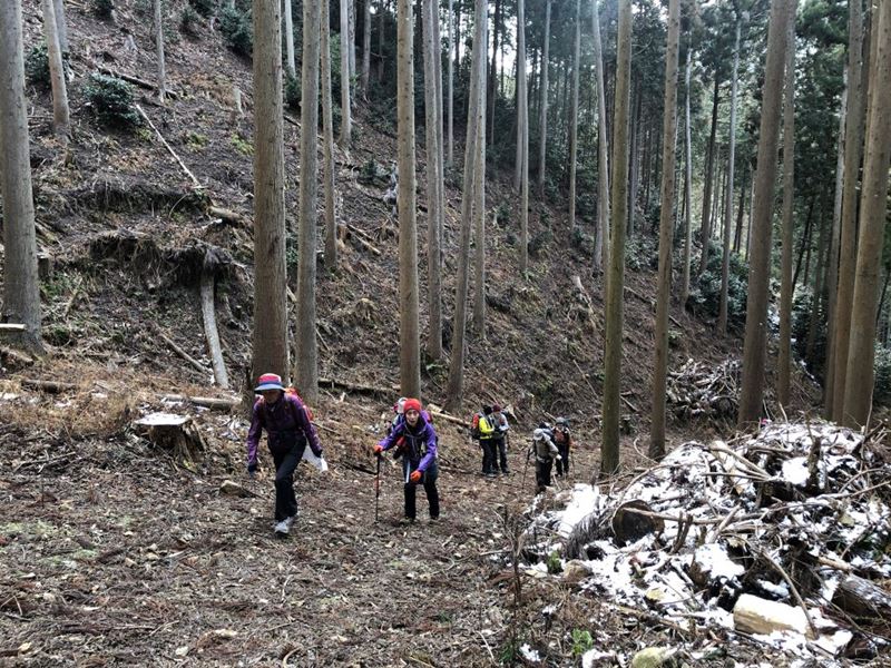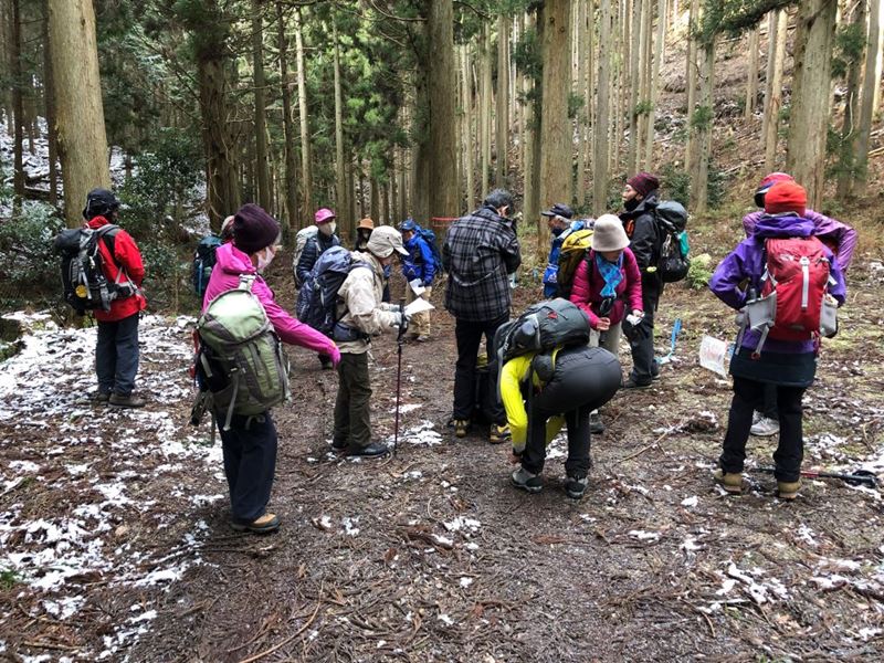 里山の読図続編を実施しました。2月も終わりに近く、春がもうすぐだと思ったのですが、冷え込みの強い日になっています。続きで前回の下山地点までいき、そこからスタートしました。里山といえども、地図、磁石, GPSはやはり必携でしょう。雪が残るルートをたどって寒谷峠で昼食。瓢箪崩山に登り、一旦寒谷峠に戻りここより小さなピークを2つ越えて岩倉へ降りる尾根道をたどりました。先発組はトラバース道が倒木で壊滅状態になっていて苦労をしました。後発組は下山尾根を間違ってそのまま下山。幸いに下山集合地にはほぼ同時に到着。課題が残りました。