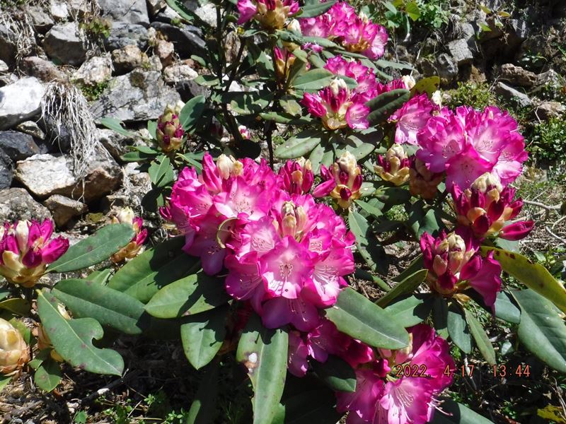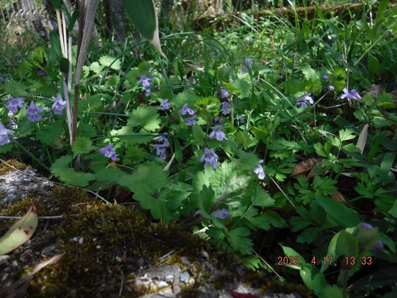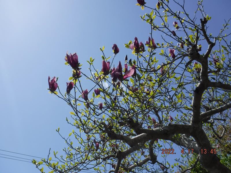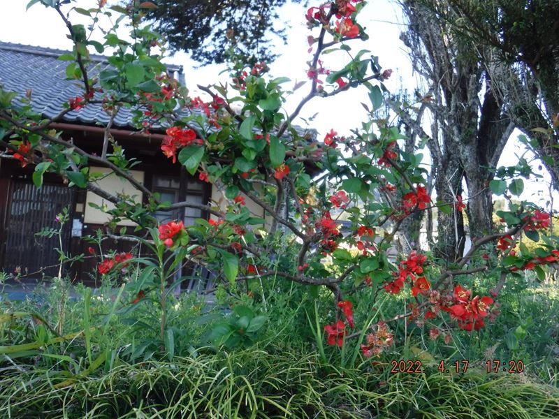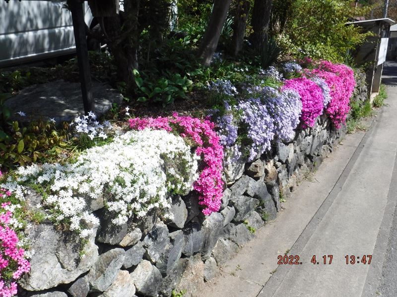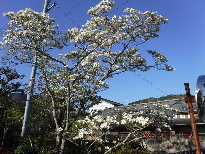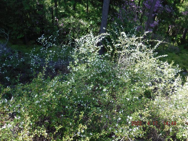 4月17日(日) JR保津峡駅~ツツジ尾根~荒神峠~表参道7.5合目水尾分かれ~愛宕神社 お参りを済ませて、下の広場でランチタイム。休憩小屋の下からの裏道~水尾集落バス停~明智越分岐~送電線鉄塔下~明智越~登山口~亀岡駅。山頂から下り、再び登り返すちょっとハードなコースでしたが、山中ではコバノミツバツツジ山桜、タムシバ、水尾の里ではアケビの花、カキドオシ、シャガ、などの花々に励まされて歩きとおせました。
