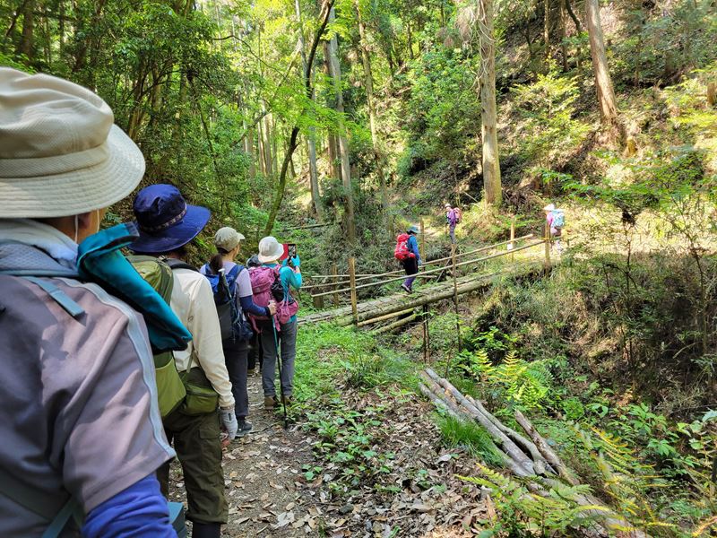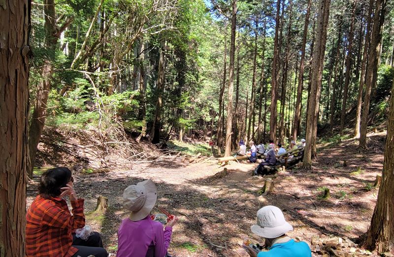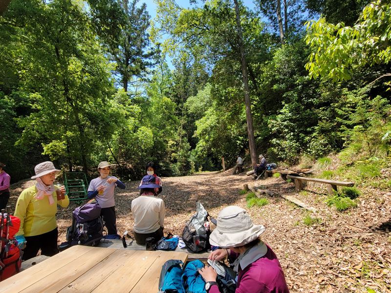 光明寺~西山古道~西山キャンプ場(休憩)~大沢峠(ランチ)~釈迦岳~ポンポン山東尾根~東海自然歩道~杉谷~三鈷寺~小塩へ向かう途中の休憩所