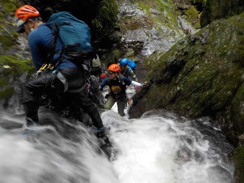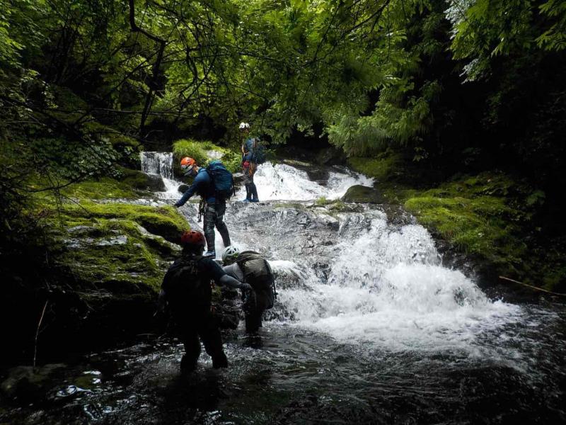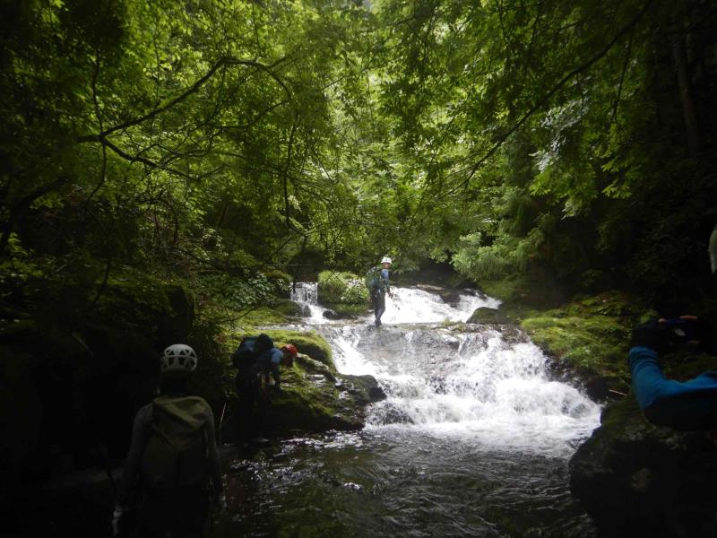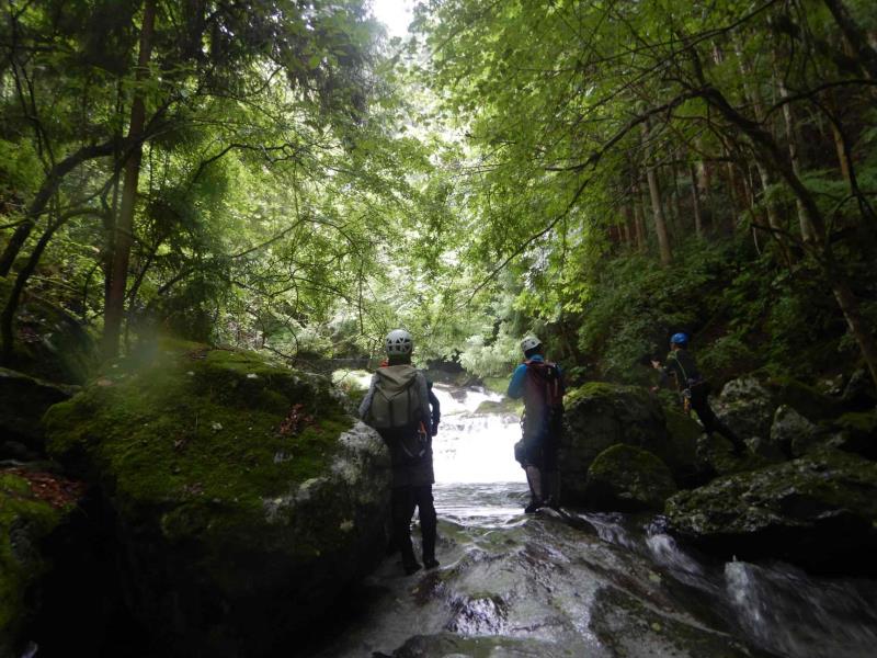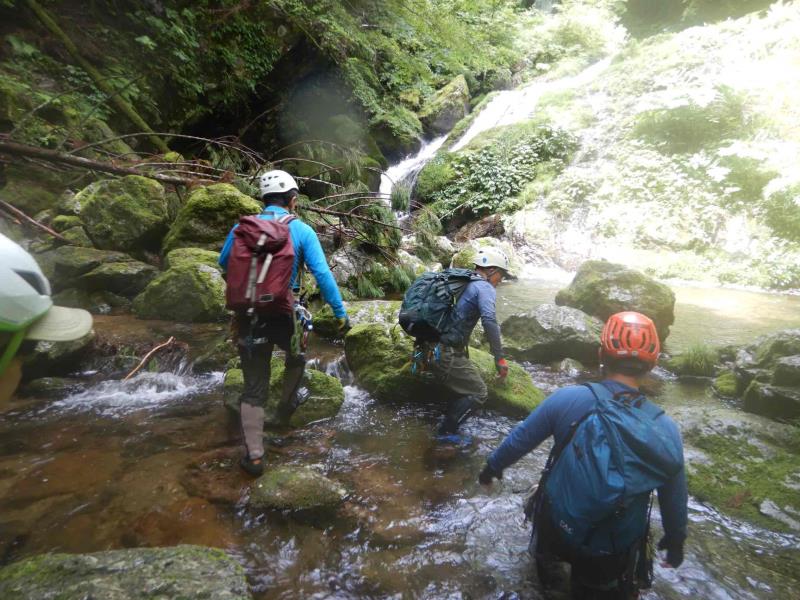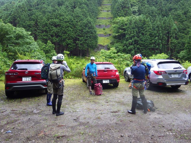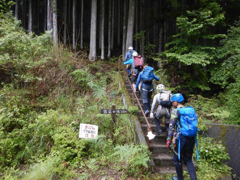 グレードは初級ですが、2段50m琵琶滝や40mの中ノ滝など立派な滝もあり楽しいルートです。7時半頃登山口に到着するも雨。テンションは上がらず小雨になるまで約2時間ほど待機。9時半頃スタート。水量は少しだけ増えましたが、コンディションは良好。
