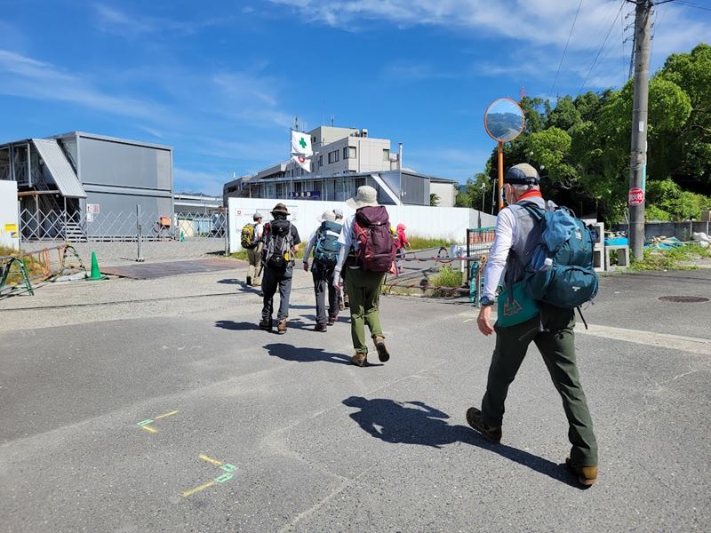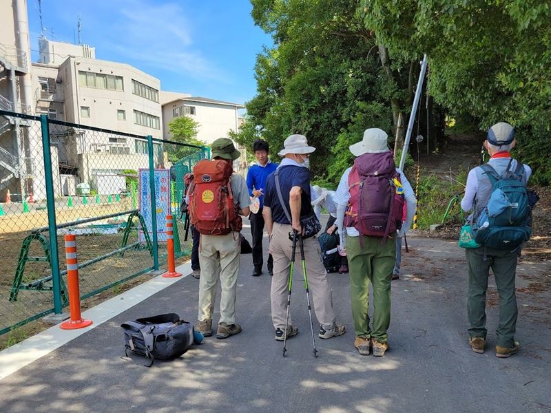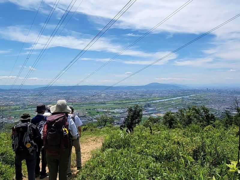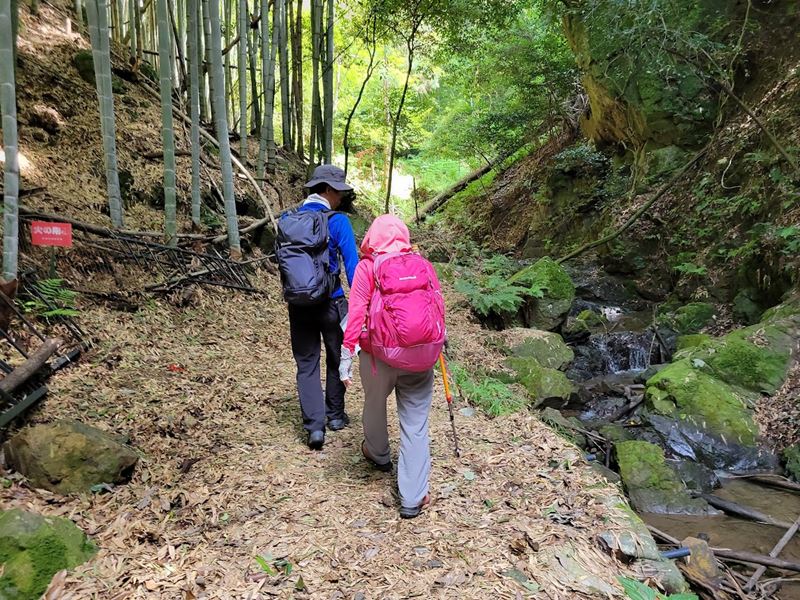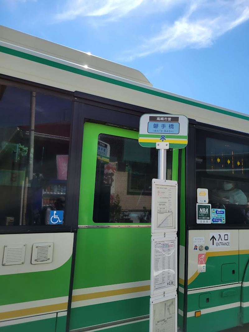 この真っ青な空の下、平地歩きはきつかろう、というリーダーの配慮があり、登山道入り口最寄りの「磐手橋」バス停までは高槻市営バスでさっと到着しました。