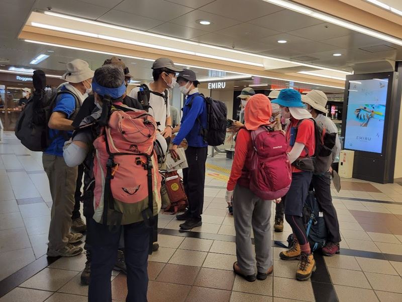 阪急高槻市駅2階出口、午前9時に本日の参加者14人が集まりました。