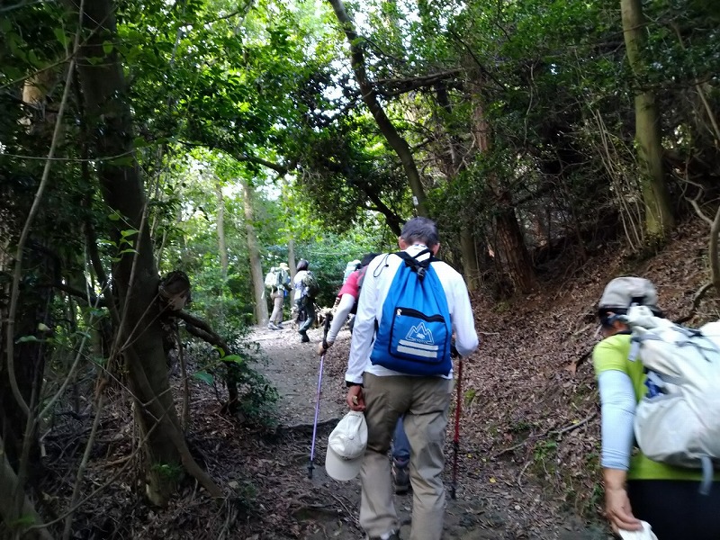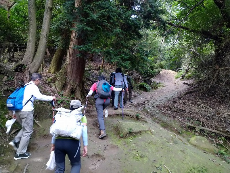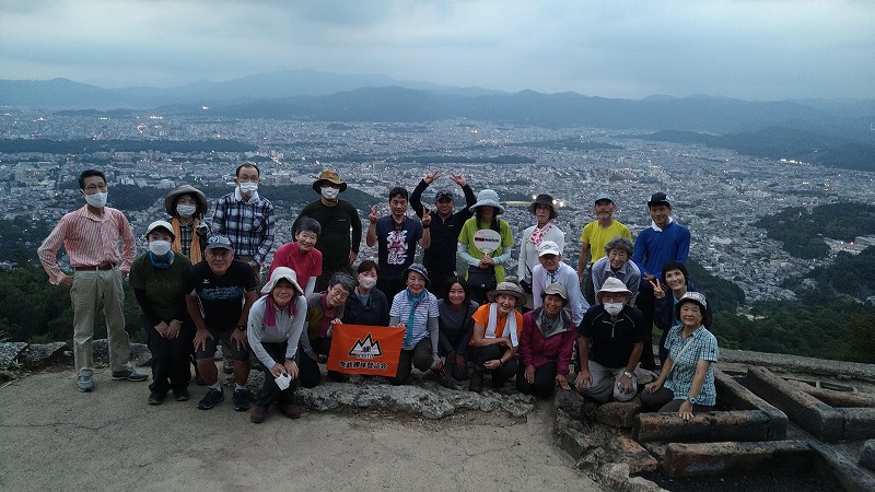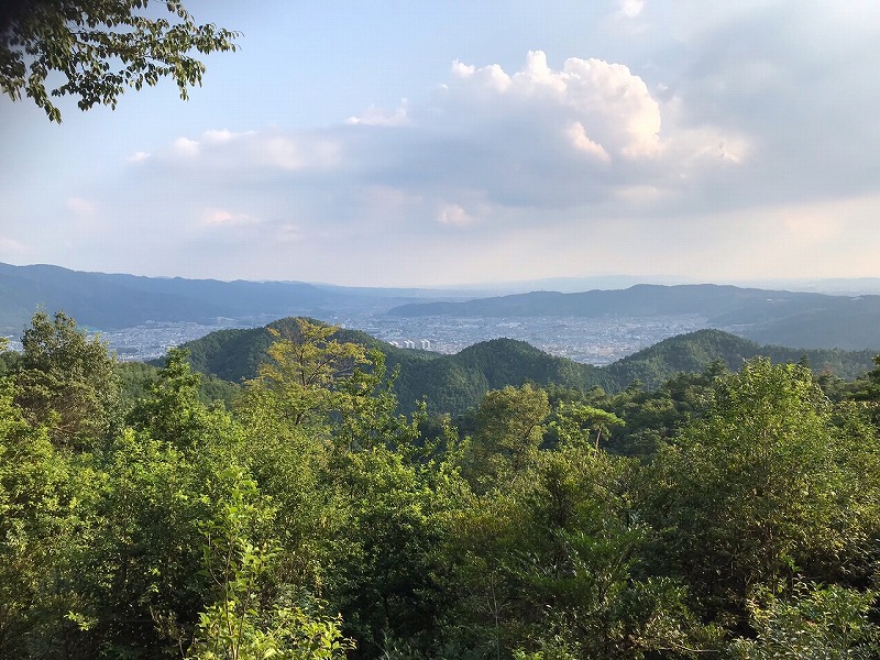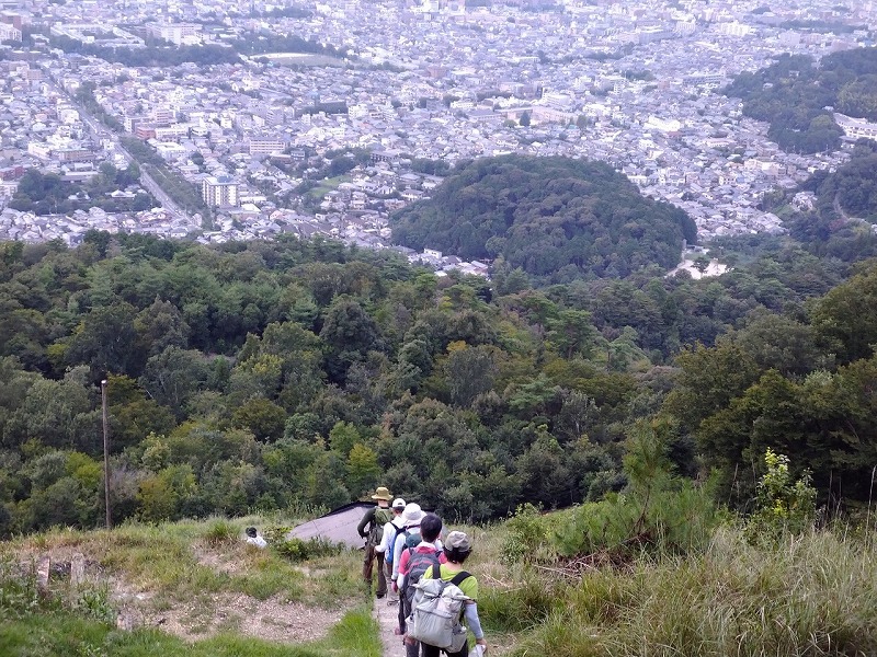 再開された山科コースからは7名が参加。後山階陵前を通るスタンダードなAルートは倒木で荒れている箇所があるため、安祥寺上寺跡から御陵三山を眺めるルートで火床を目指しました。