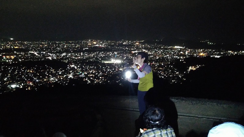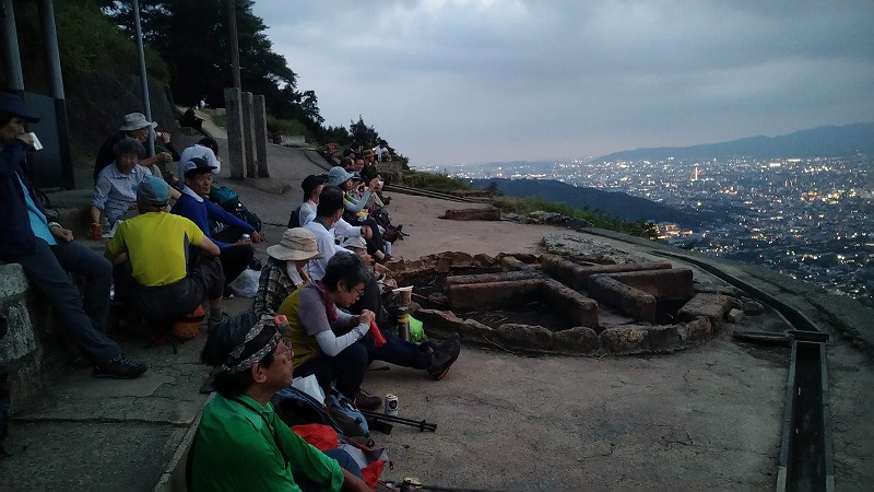 あと嬉しいおまけとして、なにわ淀川花火大会の花火が遠方に見えまして納涼登山に花を添えてくれました。