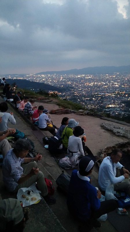 火床から京都の夜景を背景に参加者1人ずつ自己紹介、近況報告。故人を偲び、終わる夏を惜しんだ1時間、良い夏の締めくくりとなりました。