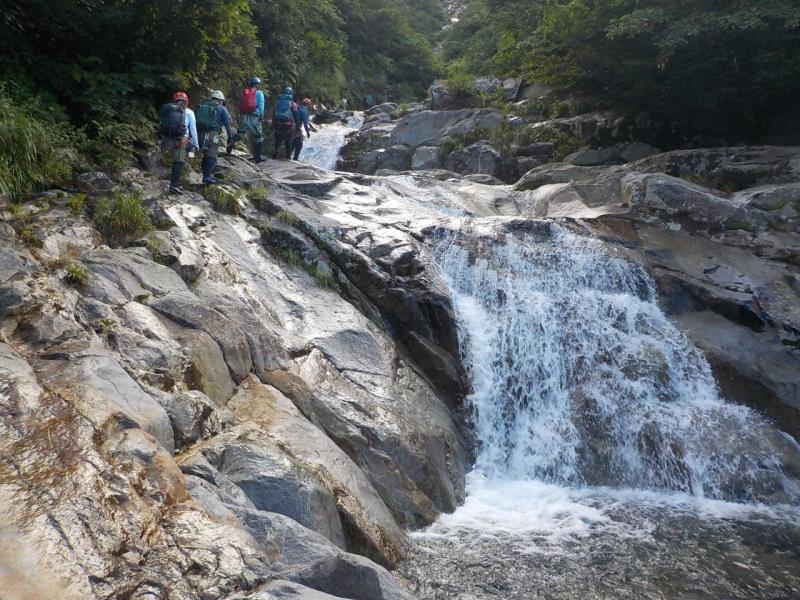 滝群、突破可能なゴルジュ帯、大ナメ、美しい源頭。遡行者が幸せな気持ちになる沢。
