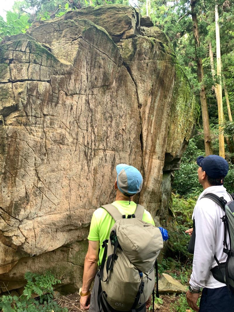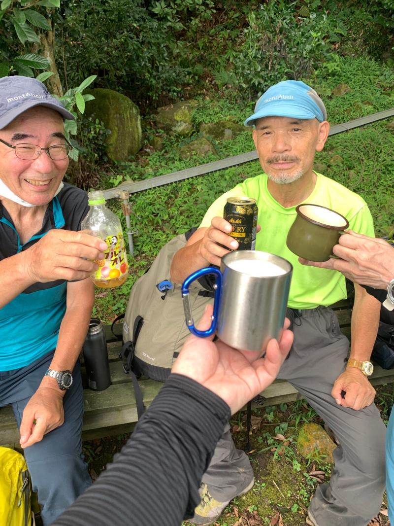 伊崎山の頂上踏んで、棹飛びの場所まで移動して、棹を実際見まして、今回の例会メニューはほぼ終了。