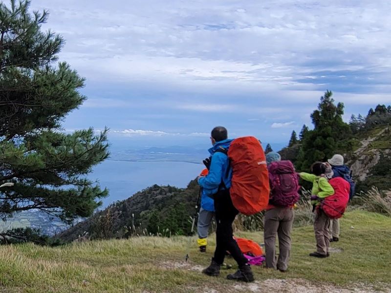 JR比良駅集合時に堂満岳をバックにきれいな虹のお出迎え。幸先好調と思いきや、天気予想とは異なり一日曇り空、強めの寒風で初冬の山行となりましたが久しぶりの山行のメンバーもいたためゆっくり登山。おしゃべりしながらの楽しい山行ができました