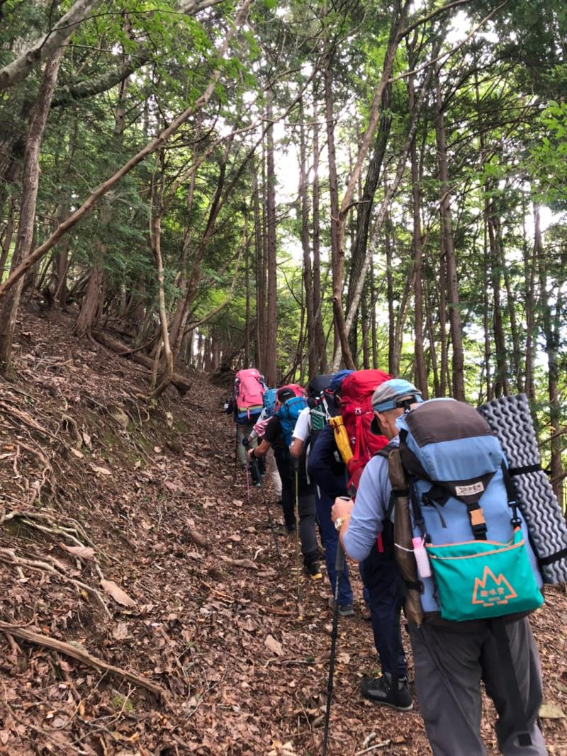 今回、初例会でテント泊縦走を担当させていただきました。未熟なリーダーをサブリーダーをはじめ、参加の皆さんで支えて頂いたお蔭で、無事に終えることが出来ました。野菜の失敗も笑い飛ばしていただいてホッとしております。不安な気持ちで参加された方もおられましたが、重い荷物を担ぎ、最後までバテることなく歩ききっておられました。頼もしい!!メンバー全員が始終和やかに楽しんでおられる様子を見て、また私自身も楽しく過ごせたことが嬉しく、感謝でいっぱいです。ありがとうございました。(S.Y)