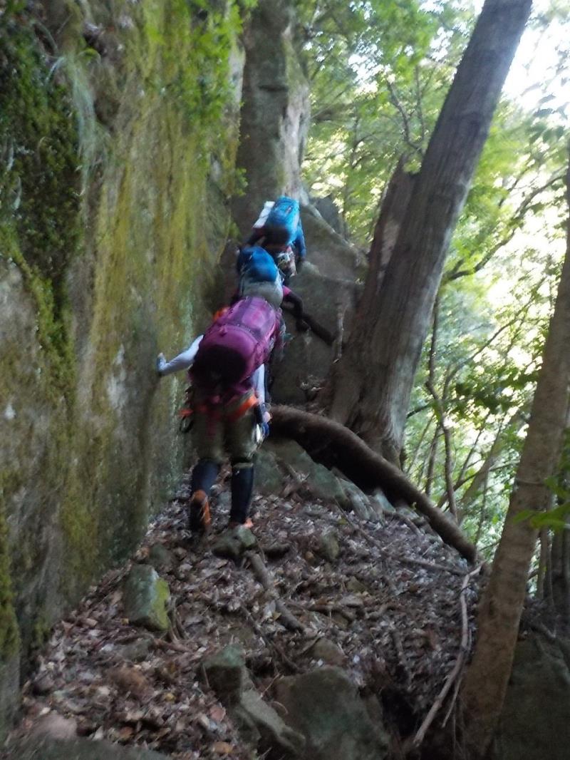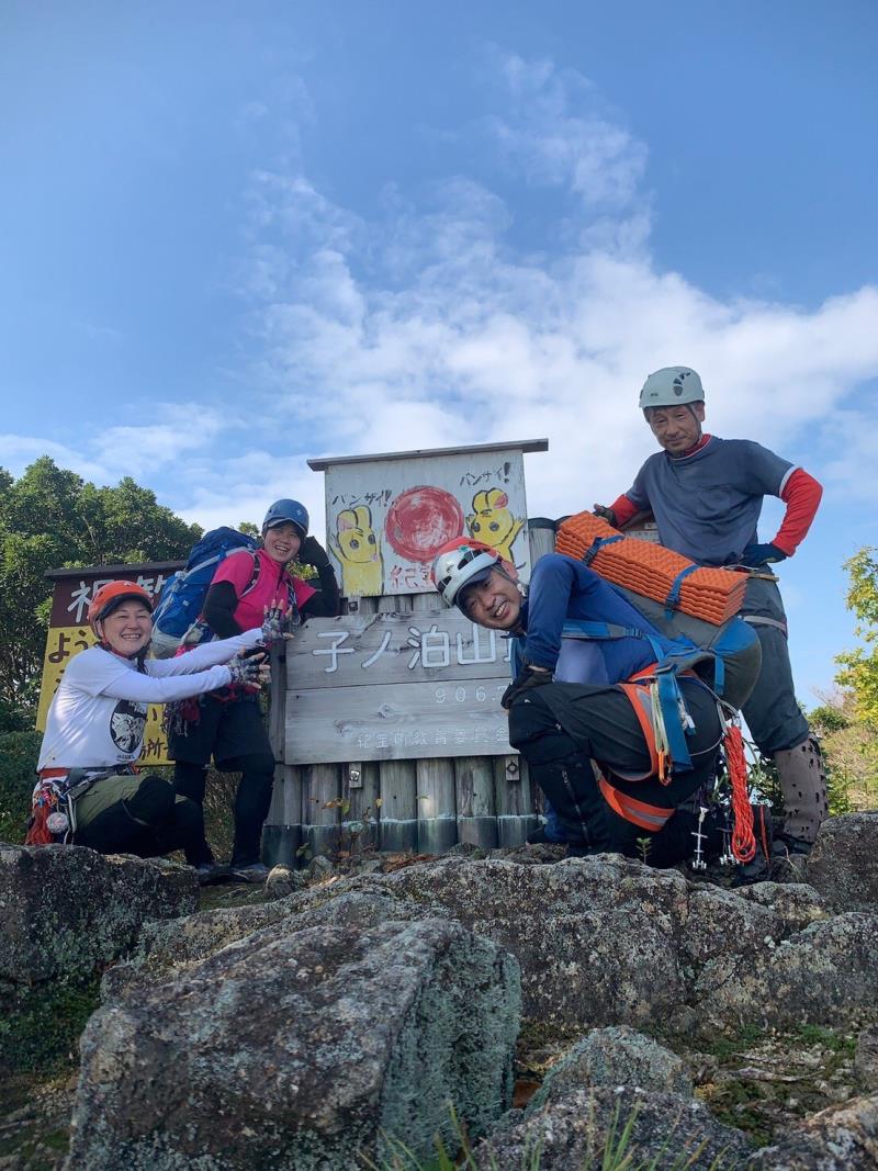 癒し、スリリング、アトラクションの揃った楽しく面白い沢であった。関西100名山の子ノ泊山ピークに登り詰めて沢登りの終了。