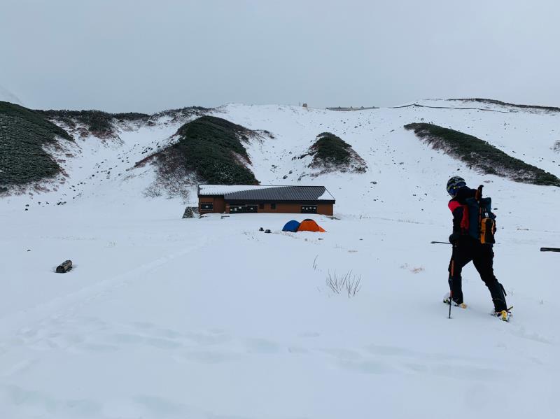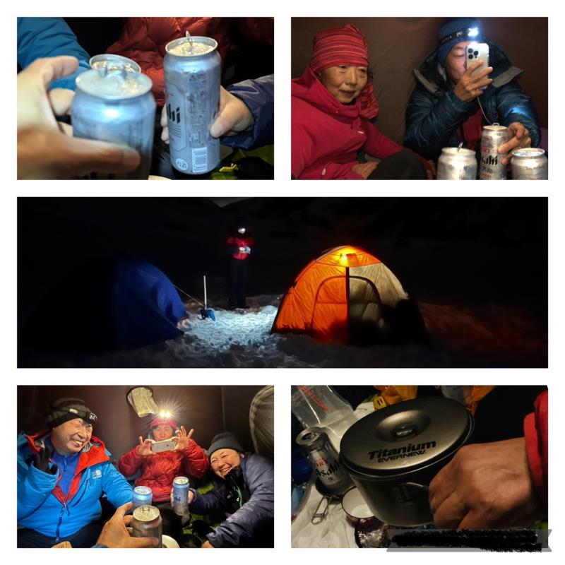 薄く積もった雪を溶かして水を作り、食事と酒と山話を楽しみました。