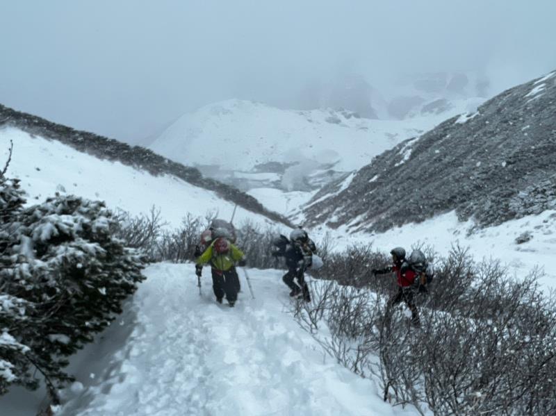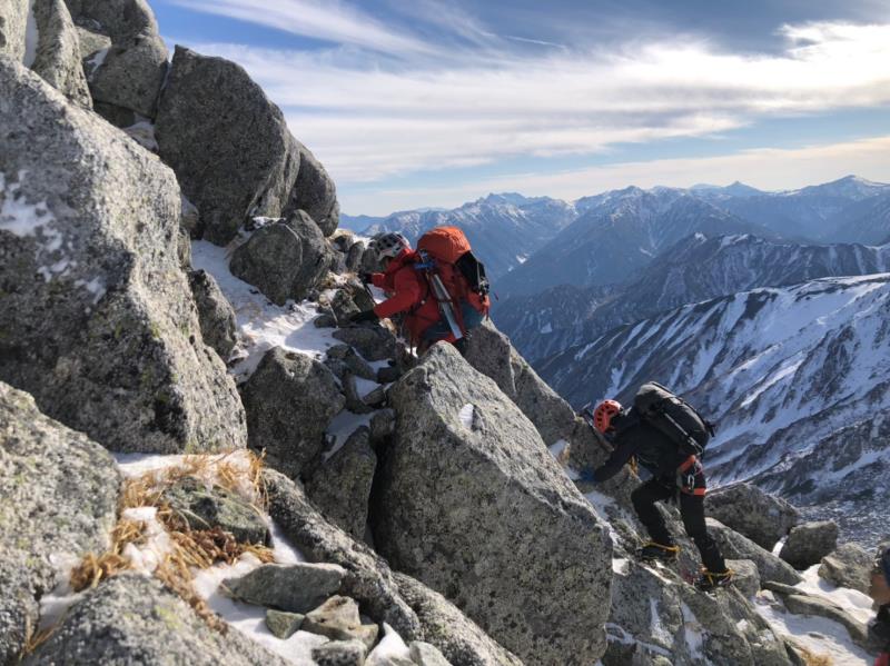 参加のSです。いいタイミングでの雪山訓練、しかもフィールドが北アルプスで、これから半年は行けるであろう雪山登山の再確認と学びの場になりました。コロナ渦で控えておりましたが、お酒を交えての先輩方の体験談は、楽しく大変参考となり、有意義な場でした。天候や各メンバーの立場に寄り添い、臨機応変に対応していただいたリーダーに感謝です。この訓練で得たことは、今後の山行に生かします!ありがとうございました。(Y.S)