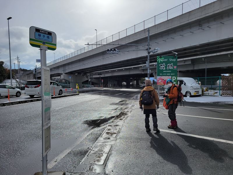 「10年に一度の寒波襲来」で、平地でも前夜からの積雪により交通網は滞り、道路を歩くのも転倒しないよう恐る恐るという状況のなか、遅れながらも動いてくれた阪急沿線、地元の3人が阪急高槻市駅前バス停に集まりました。