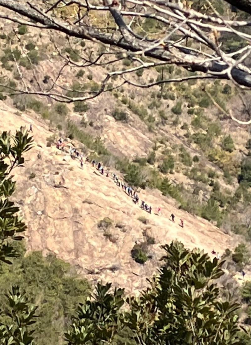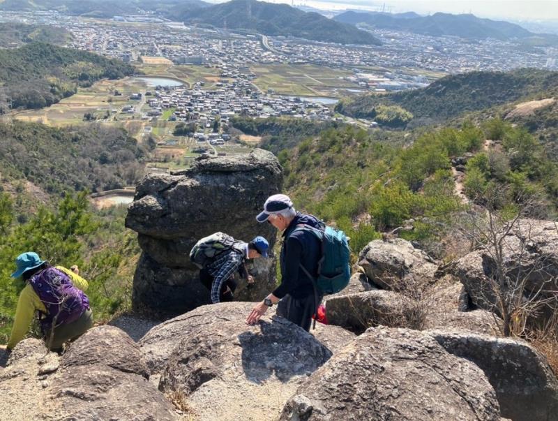 播磨アルプスにある桶居山へ行ってきました。ここでは有名な高御位山がありますが、そちらへはいかずにマイナーなコースを歩きました。コースには有名な百間岩があります。手前から見ると蟻の行列ではないですが、多くの人が登っていました。行き交う人が少なくなったコースを180度の方向になる桶居山へ向かっていきます。コースには大きな岩が所々に出てきて変化がありました。