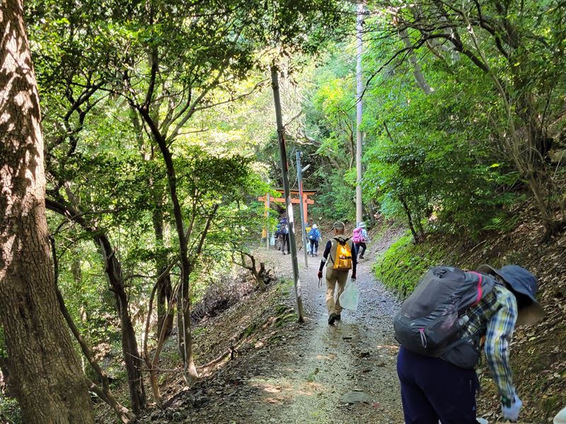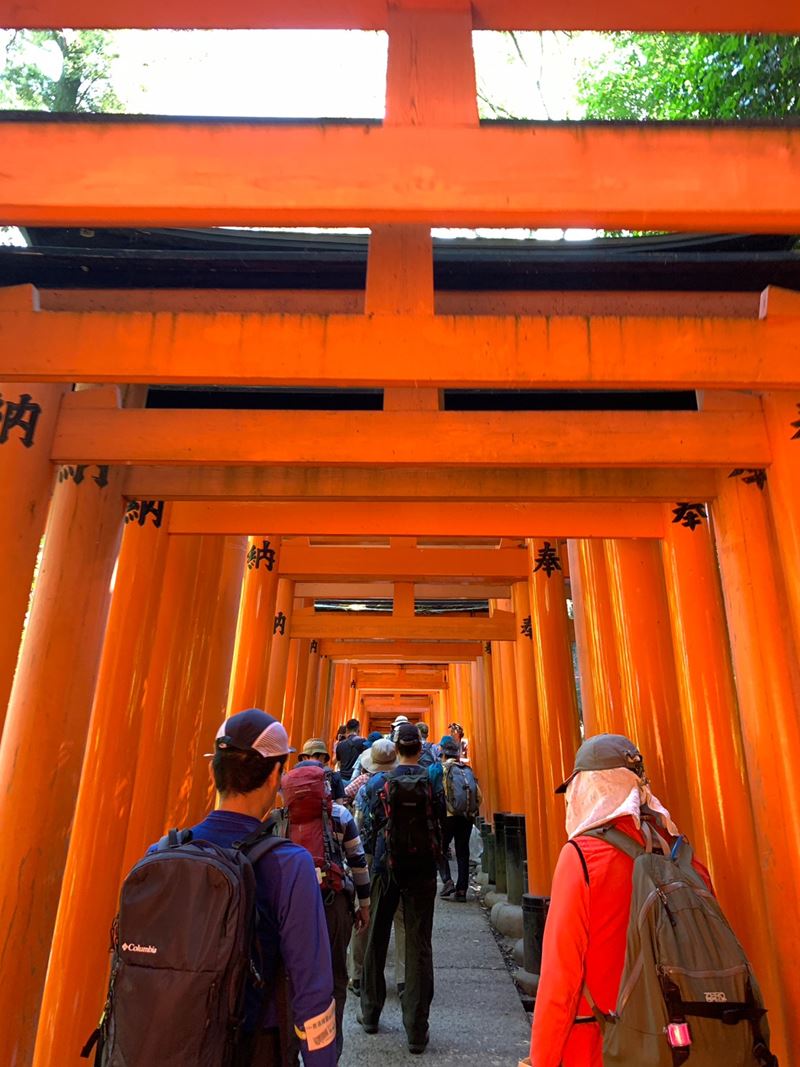 稲荷児童公園に43人集合、観光客で込み合う伏見稲荷大社に入る。