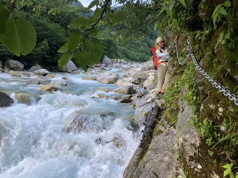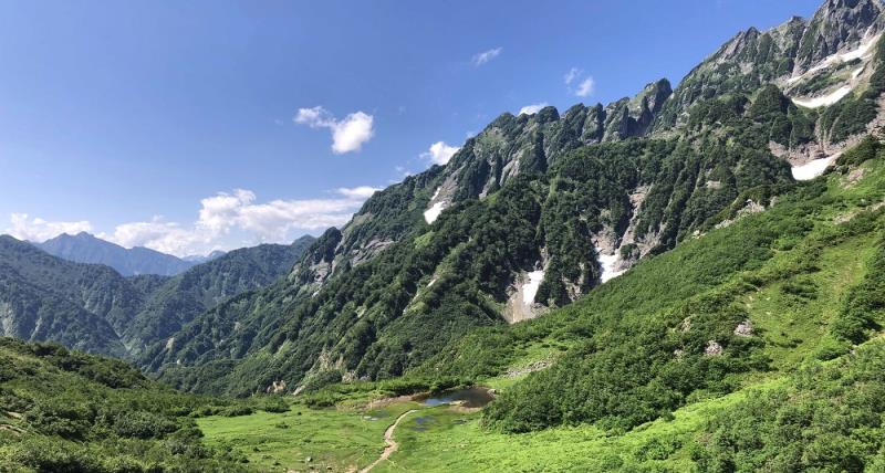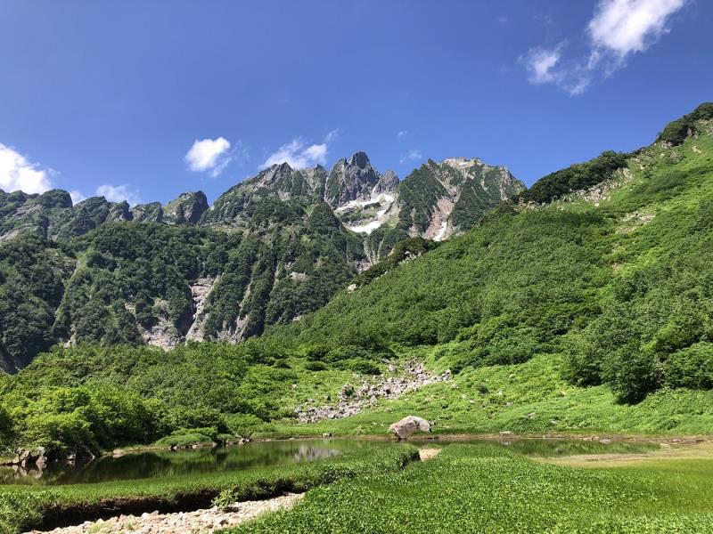 今期の夏山第一弾として選んだのは、秘境・奥剱にある池ノ平山。その鞍部にひっそりたたずむ赤い屋根の池ノ平小屋は、以前、チンネ左稜線を登った折に眼下に見たことがあり(サマリー最後の写真)、いつの日か訪れたいと思っていた場所だ。剱岳へのバリエーションルートとして人気のある八ツ峰やクレオパトラニードル、チンネ、小窓ノ王など荒々しい鋭峰とは対照的に、池ノ平山は実にたおやかな山容だが、山頂直下の岩場や連続する偽ピークは想定外でなかなか手強い山だった。それでも、小屋の前に広がる湿原とお花畑、平ノ池といったのどかな風景が、この秘境まで足を運んだあとの疲れを癒してくれた。仙人池に映る逆さ剱の絶景、人生初の五右衛門風呂など至福の時を過ごした山旅だった。(S.I.)