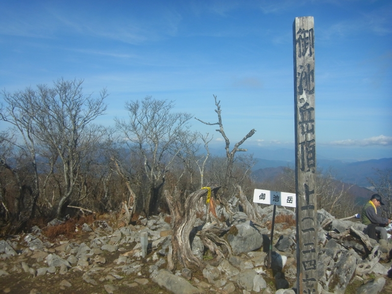 晴天に恵まれて穏やかな初冬の日差しの中、御池岳を南側から周回してきました。紅葉には2週間程遅かったのですが反対に葉がすっかり落ちて見通しが良くなり、晩秋の良い雰囲気が良く出ていました。目の前に大きく立ちはだかる御池岳の南面、藤原岳など鈴鹿の主稜線が続くパノラマ、太平洋も琵琶湖も見える贅沢な景色。天気の良い日の稜線歩きは本当に気持ちの良いものです。日が短くて恐れていた通りヘッドランプを使っての下山となりましたが、まず想定内のロング山行でした。詳細は下記の通り。
