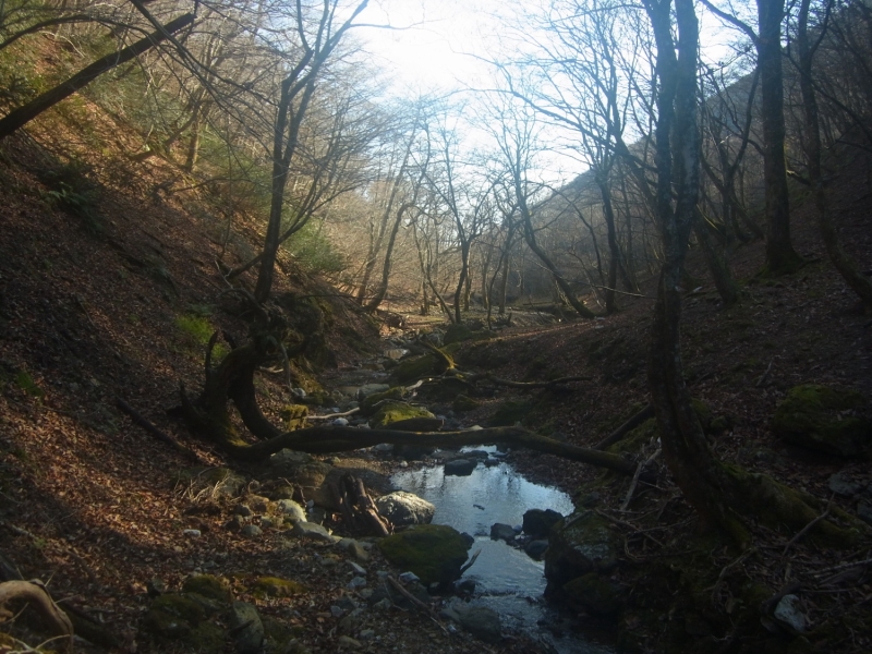 時間は下記の通り。9:30君ヶ畑の奥の駐車場、10:00ノタノ坂、11:15土倉岳、11:35御池岳の縁、12:05ボタンブチ、12:20 御池岳、13:10真の谷、13:50テント場、15:30土倉谷出合、16:30稜線へ戻る、17:20ノタノ坂、17:50 駐車場戻り