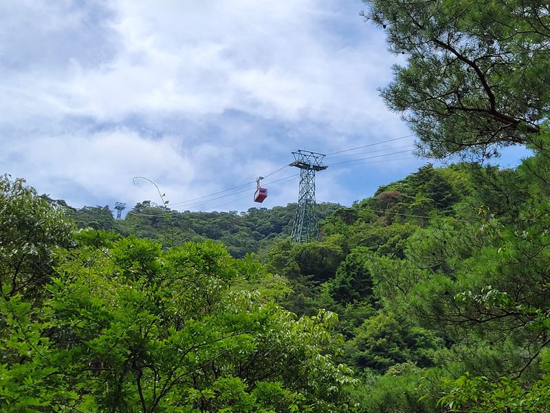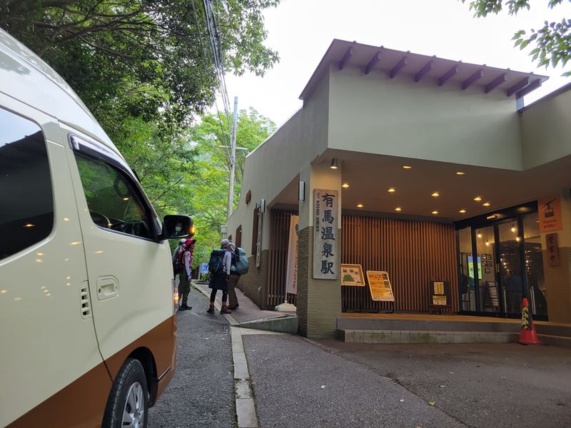 有馬駅より歩き出すも、ロープウエイ駅までで既に汗びっしょり駅員さんの好意によりクーラーに涼ましてもらい小休憩。