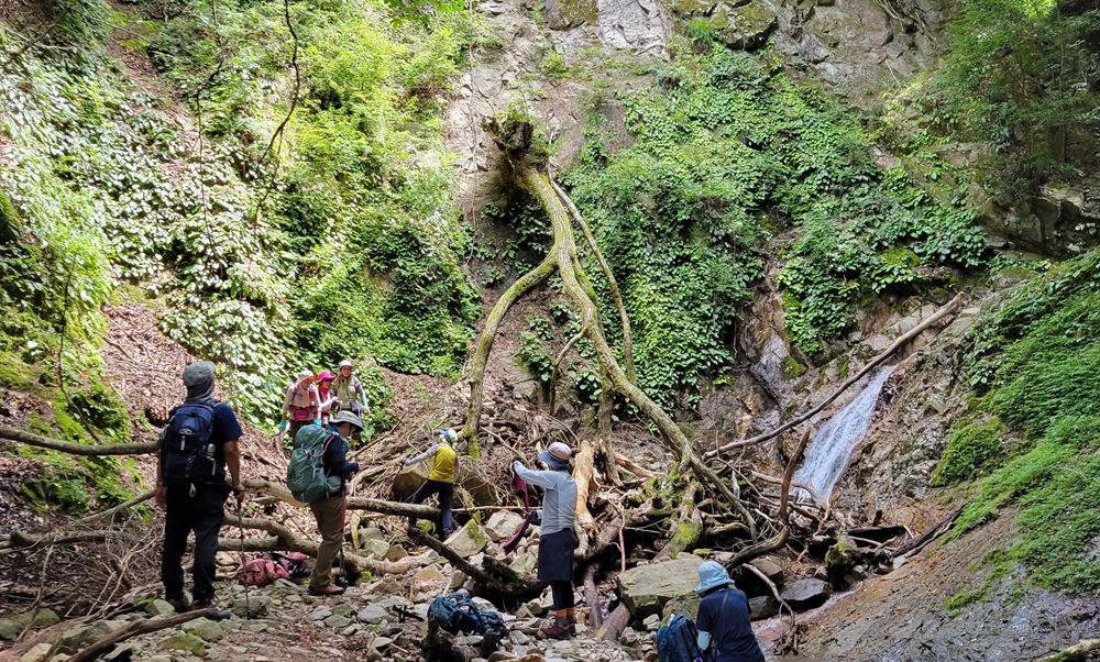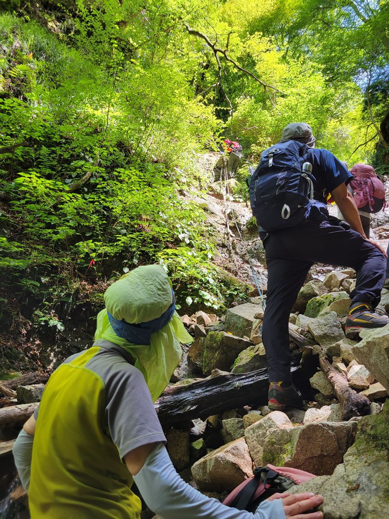 谷は最近の豪雨等の影響で荒れ気味で流木が各所にあり常に注意しての遡行となりました。