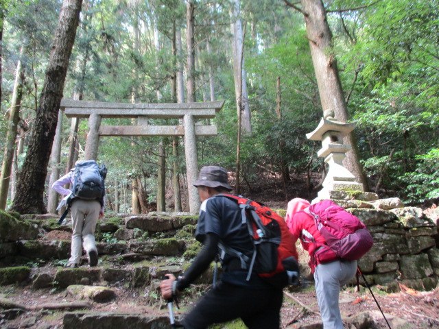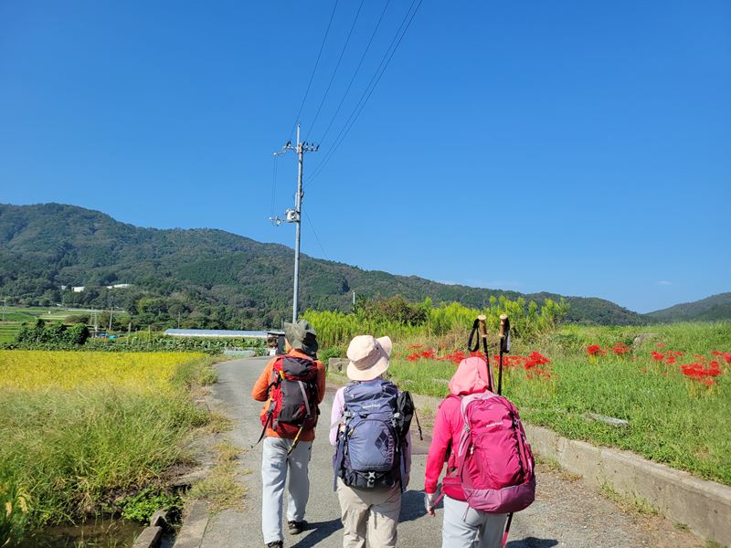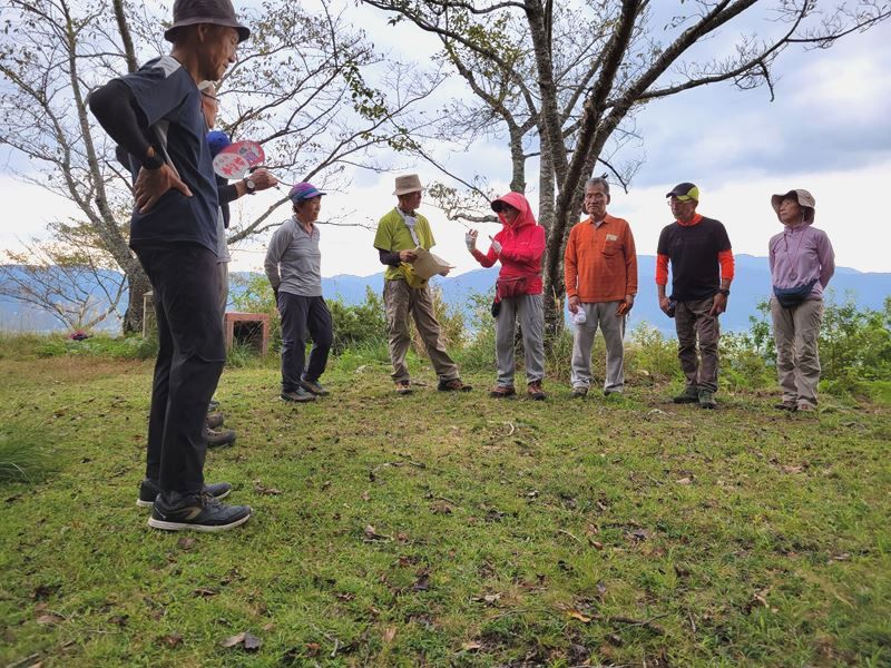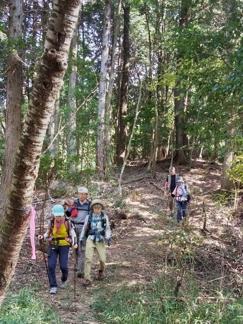 通常別々例会に組まれる2つの山を、3km林道、一般道歩きで結んでみました。京都最高30℃の日でさすがに猛暑も過ぎました。時折涼しい風が登山中に肌に優しく感じます。行者山の上りで大汗をかきました。堂徳山から下降後、とこなげ観音へは行かずに亀岡交流会館(ちょろぎの里)へ。この一般道歩きが長かった。八木城登り口で昼食。八木城跡では亀岡の大展望。ここでは戦国時代の城主“キリシタン大名内藤安寿”と信長の命を受けた明智光秀の丹波攻略についてのお話を聞きしました。皆さん感銘。(突然の指名にもかかわらず)城跡から、八木駅に下山。14:25着。え?15:23まで1時間京都行の電車がない。このエリアは休日この時間帯1時間に一本。リーダー認識不足。最後で皆様にご迷惑をおかけしました。(H.H)