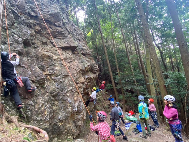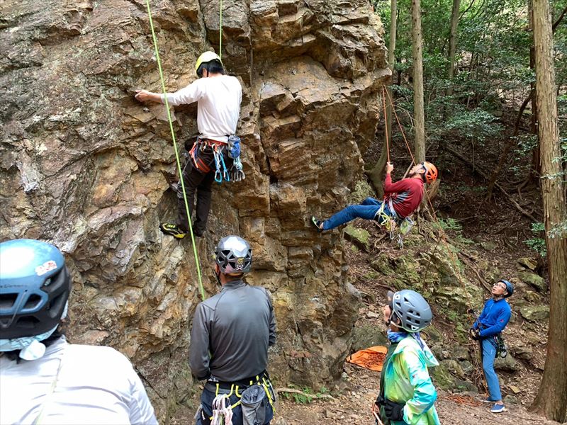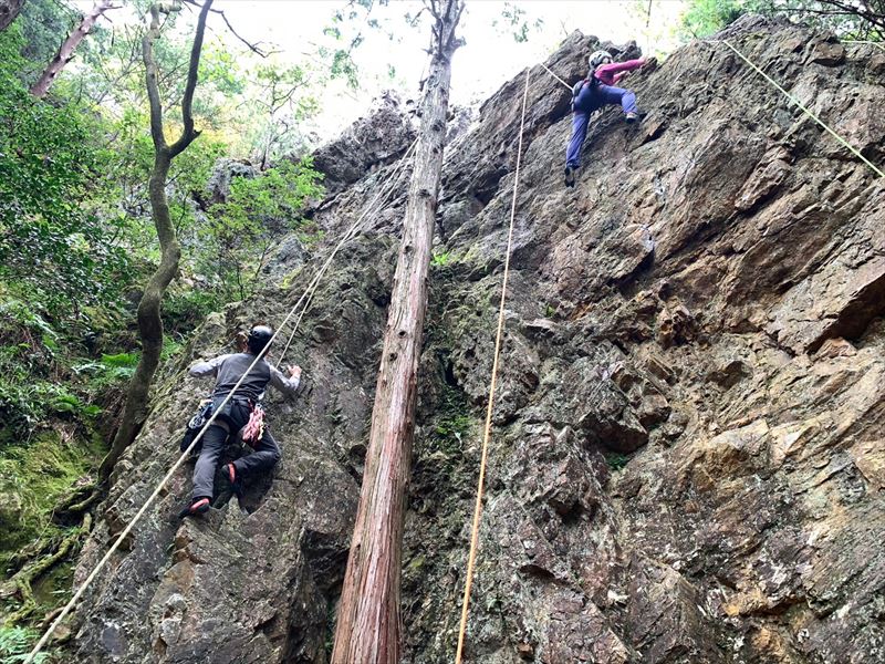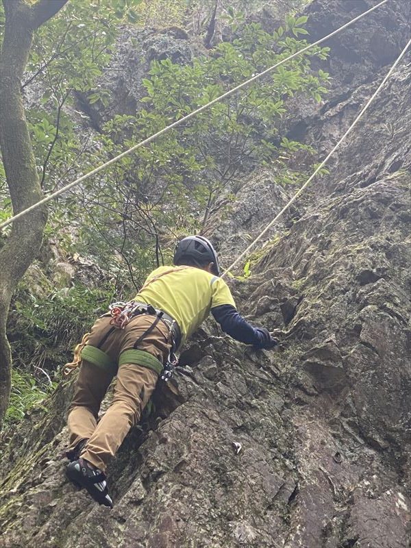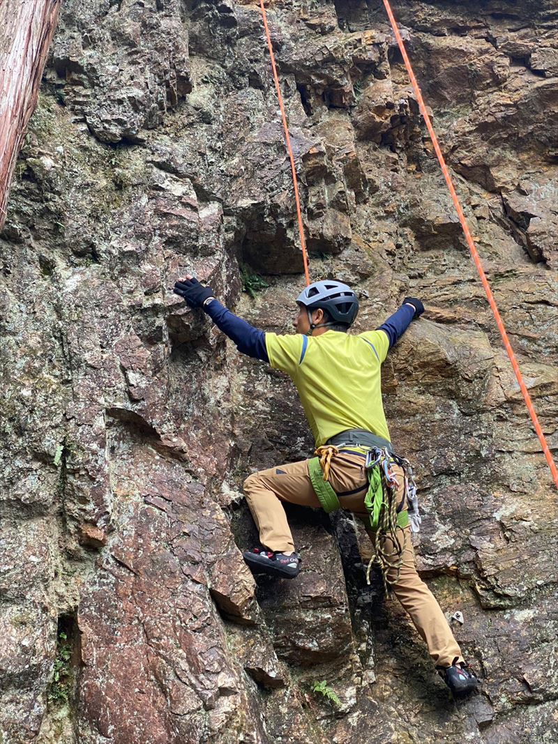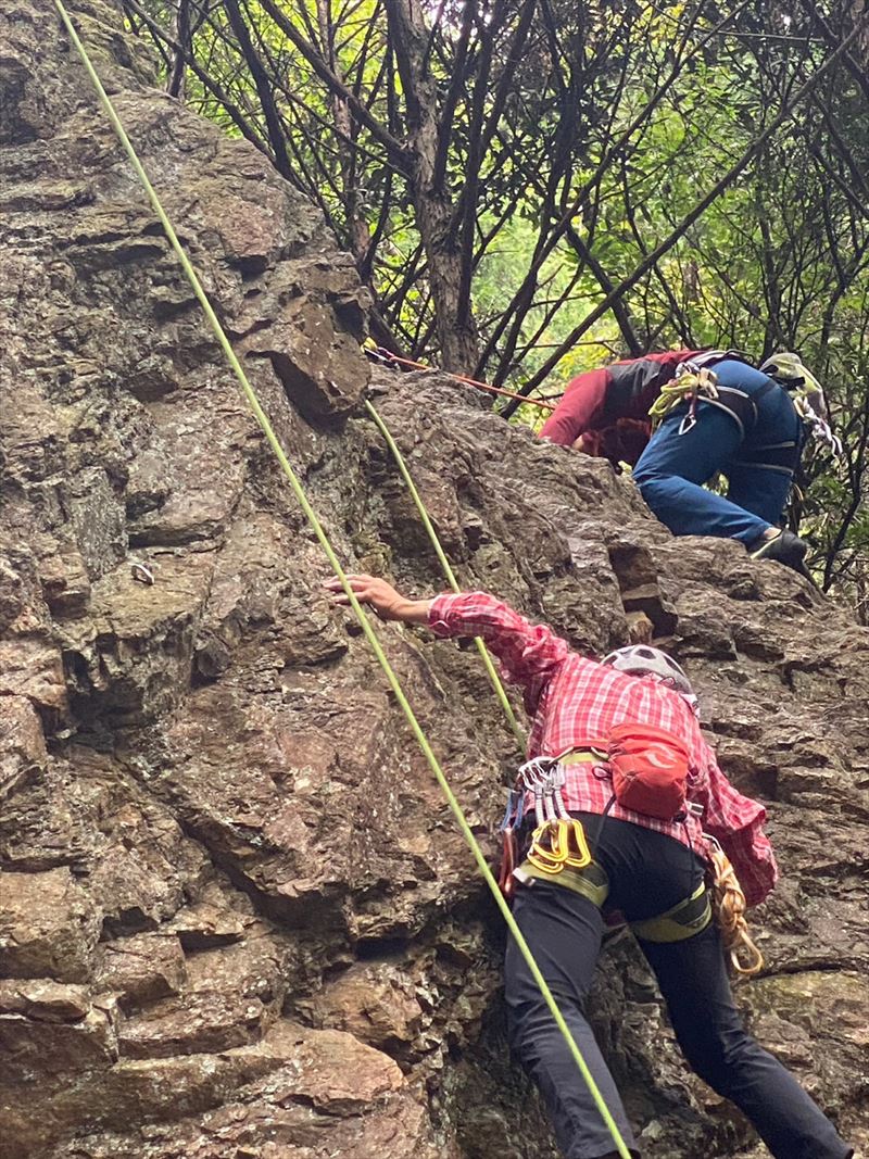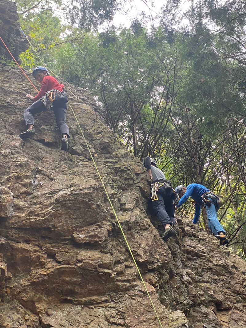 今日は前回と違い岩も良く乾きノーマルルートをほぼ全員が登り、