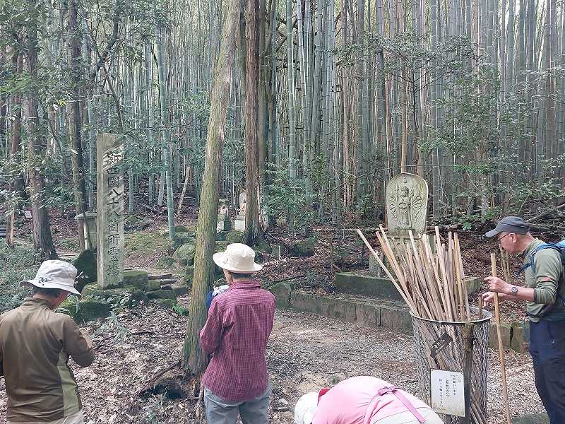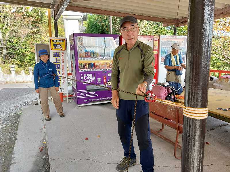早く下山できたので太郎坊宮休憩所で谷口会長からロープワークを教えていただいた。
