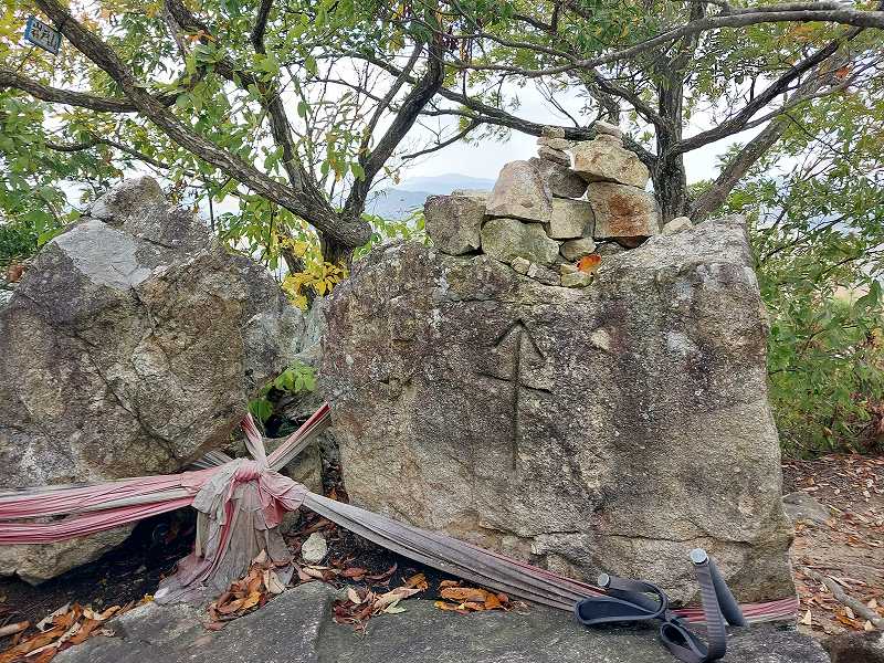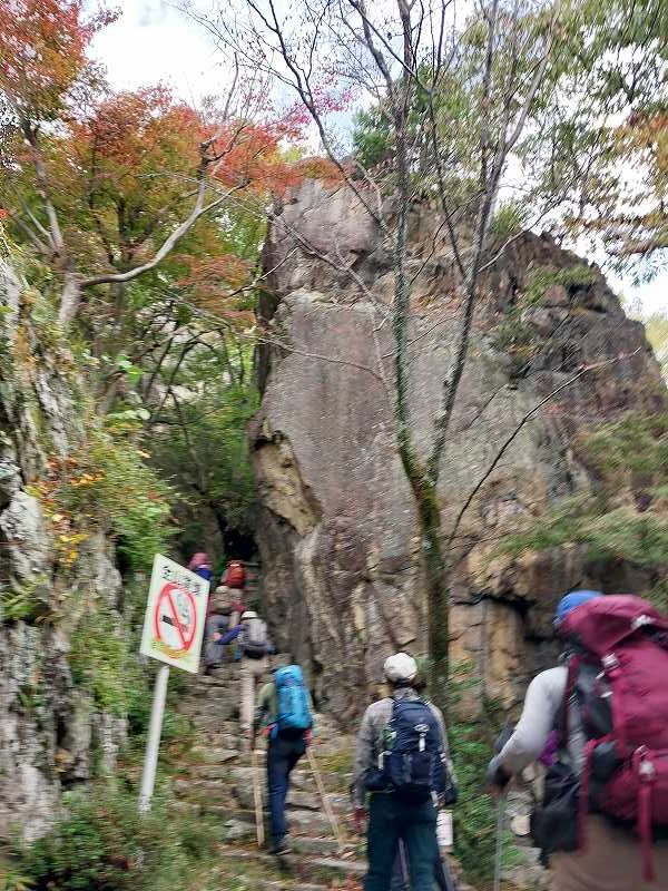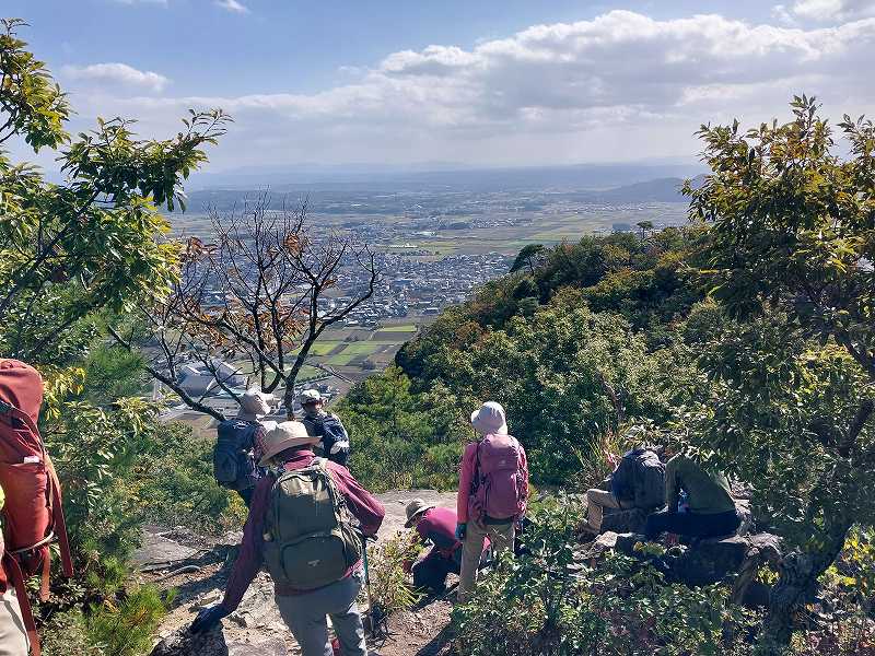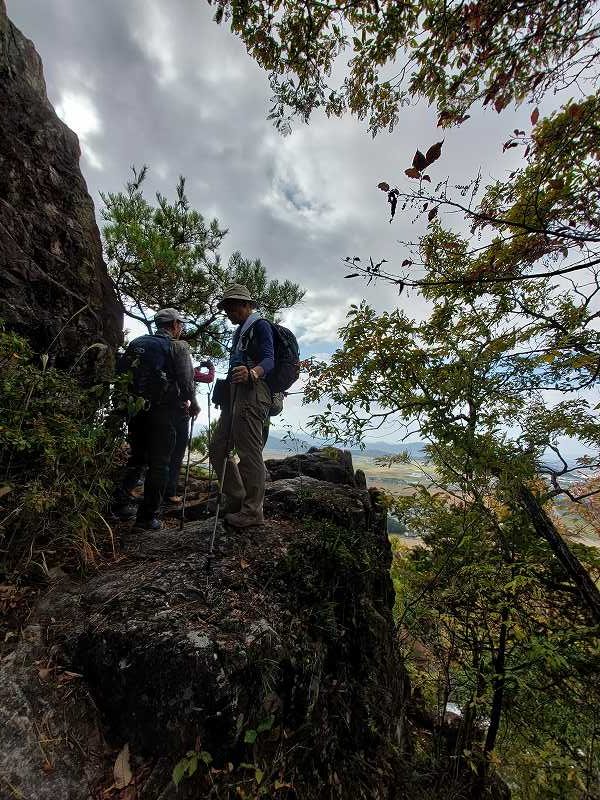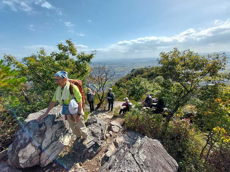 岩をよじ登ると、明治時代の旗振り場がある。次の小脇山から箕作山まではアップダウンを繰り返しながら気持ちのよい稜線歩き。