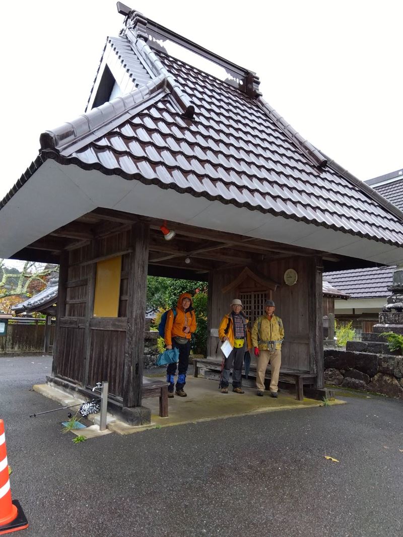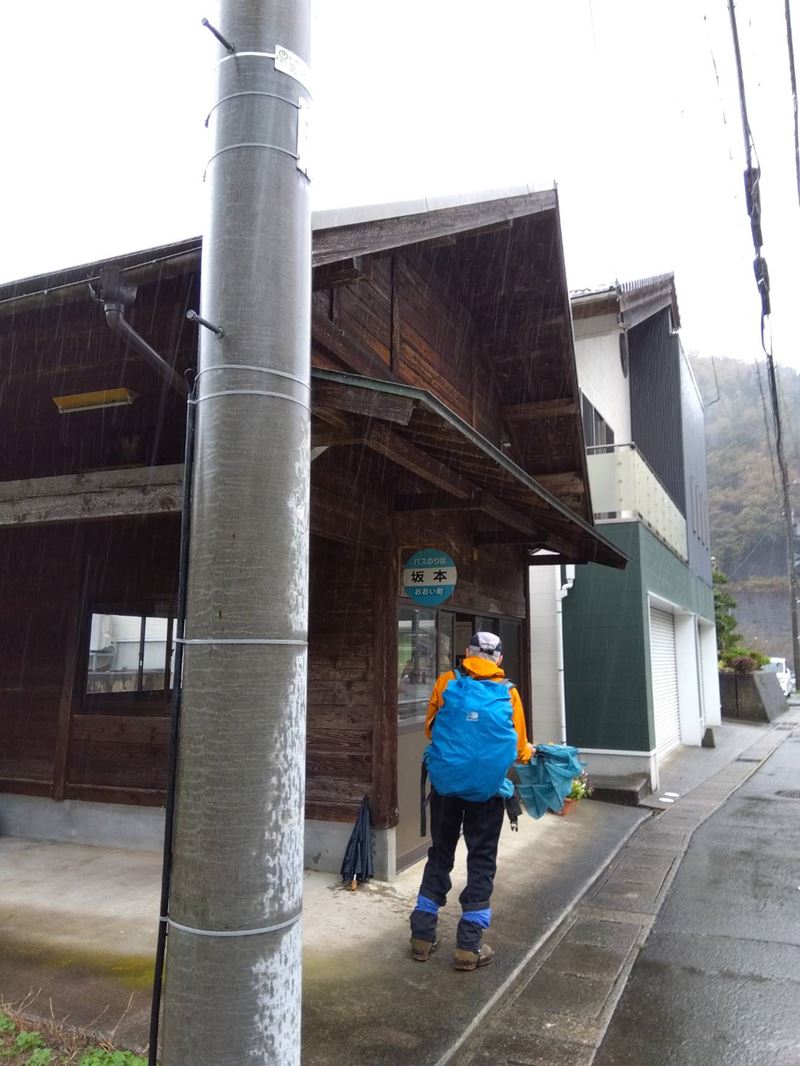 「通り堂(屋根付きの門)」を抜け、徐々に登り、ループ状の車道を直線に突破、急降下し「廃村・キリアケ(昭和28年、風水害で廃村)」。この道は太古からの街道で、京への最初の関門「きょうとい坂」であった。さらに急降下、「名田(みようでん)=米が豊作の村」と言われた。終着した坂本のバス停は四畳半もある立派な談話室? 2時間待ち、4人話題は豊富で時間消化。バスで「小浜」~JR京都17:39。