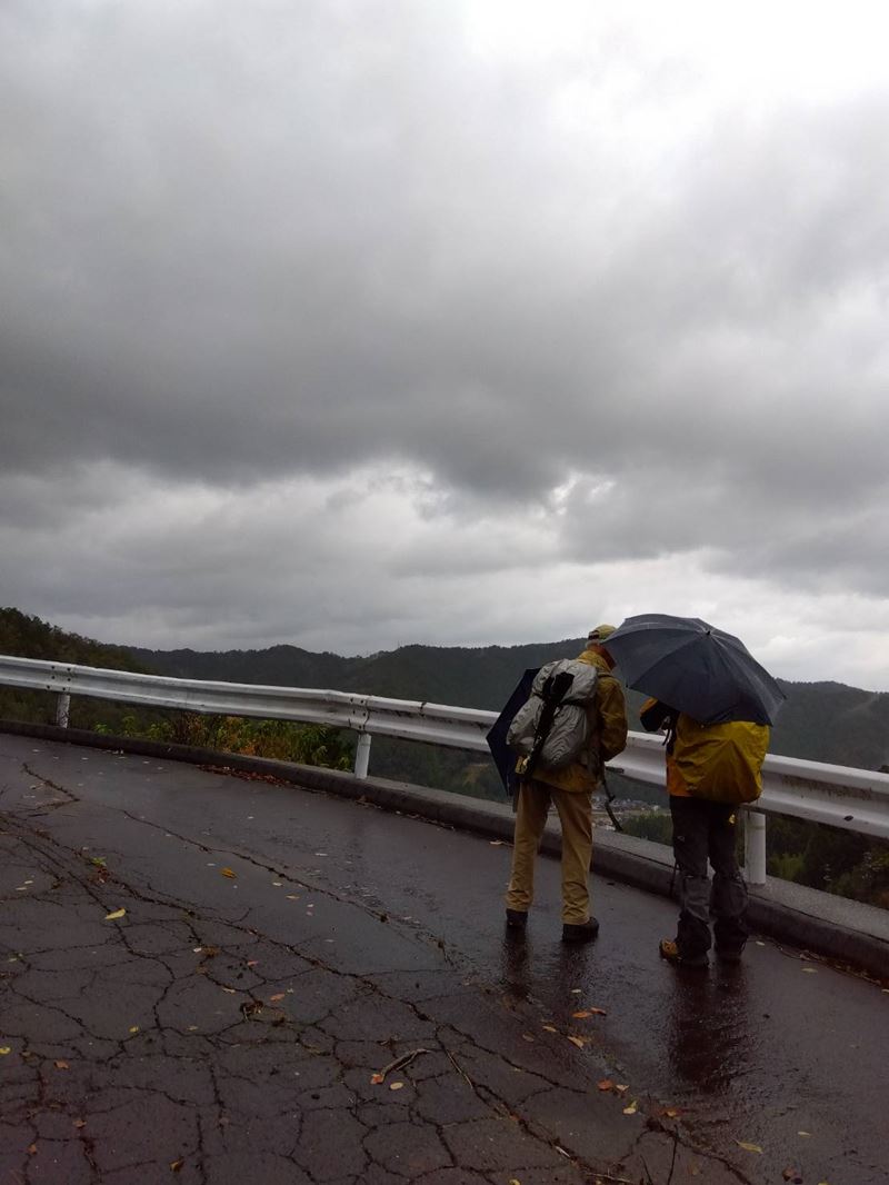 早朝から小雨が降ったりやんだり、タクシーで「石山」へ即、登山。