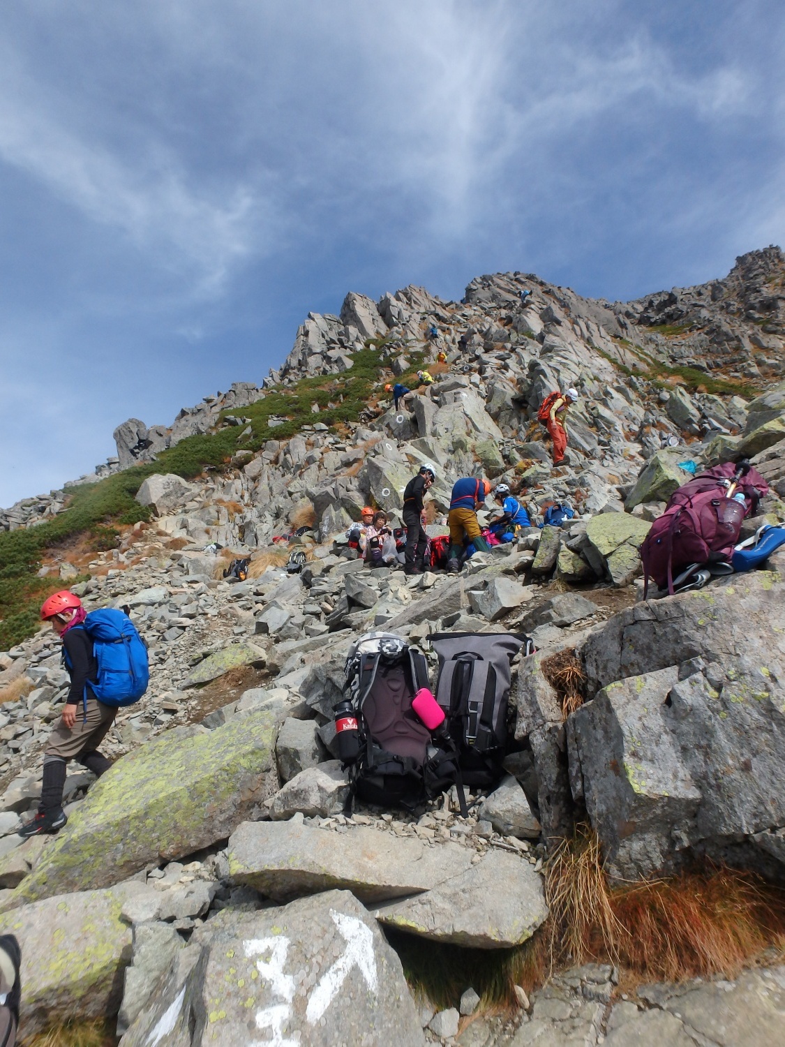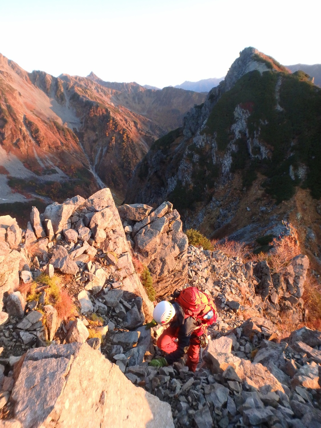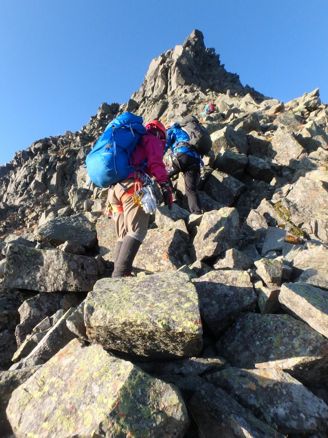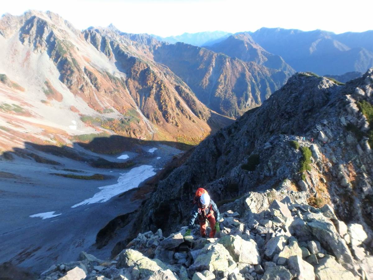前穂高岳 北尾根例会 2017年10月6日 最終更新日時 : 2017年10月6日 池添晴雄 山行サマリー summary 山域(カテゴリー) 北アルプス Tweet Pocket 2017年10月6日(金)~9日(月・祝) 前穂高岳 北尾根例会