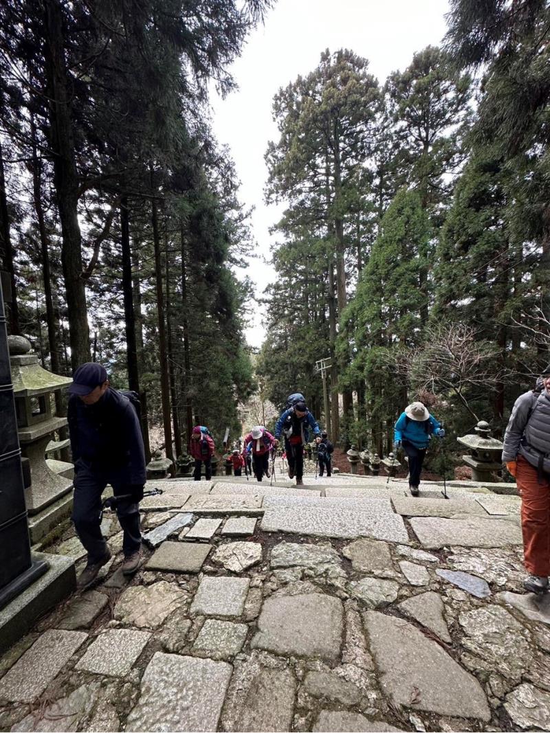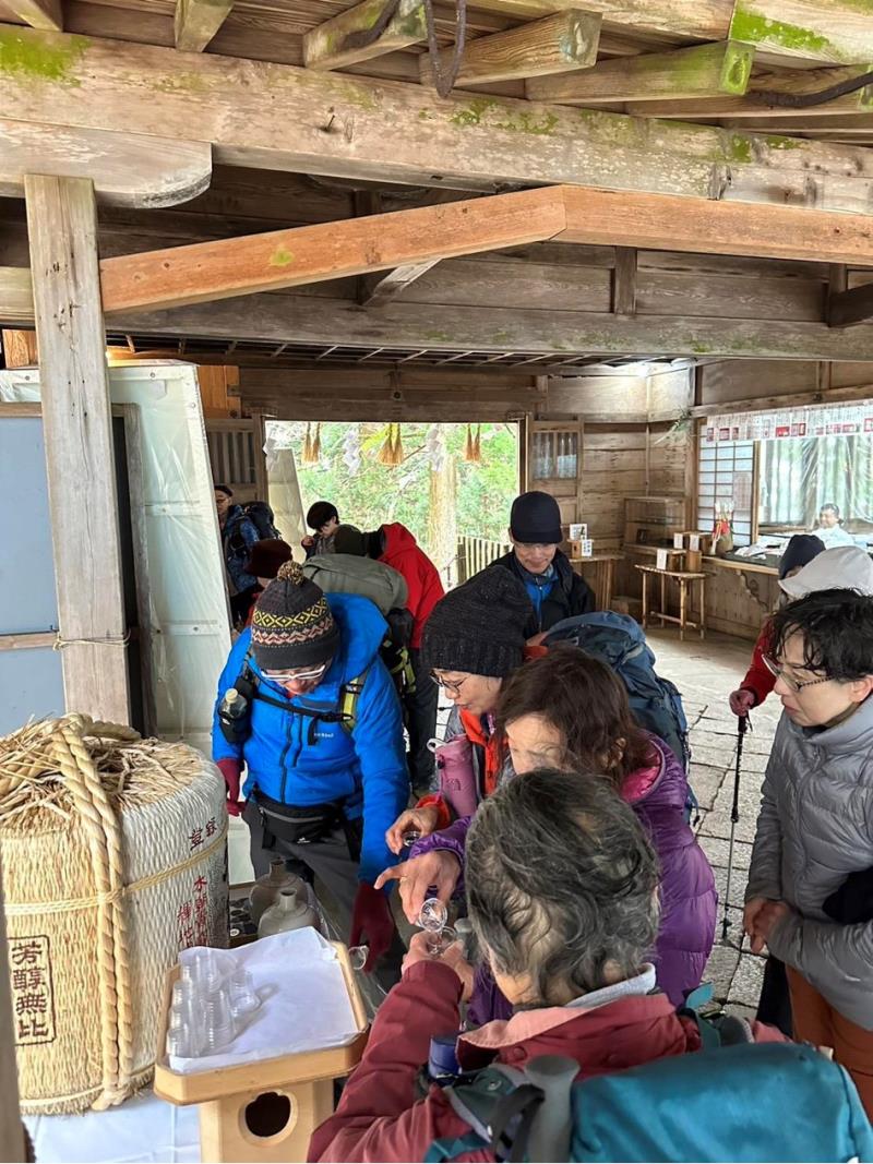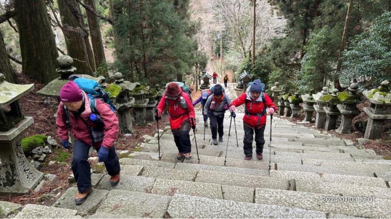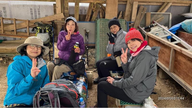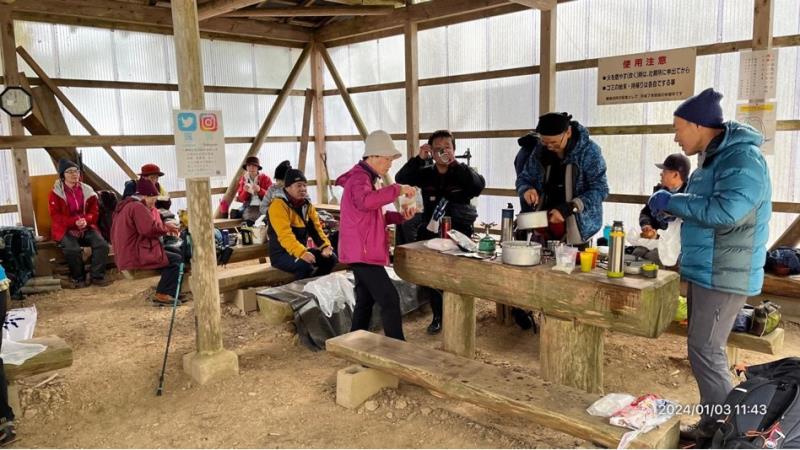 各休憩後の人数確認等お願いしたので出発時の人数確認がスムーズに出来ました。ゆっくりチームの方には交代で先頭を歩いてもらいましたが、皆さん先頭になると気合が入り少し予定より早く着き、時間的に余裕が出来たので 愛宕山ホテル跡と愛宕駅舎跡に立ち寄ることが出来ました。新春のお善哉は温かく皆さんに好評で、能登半島地震や航空機事故、紛争地域がある中、山のメンバーと楽しく登山できる喜びを改めて幸せに感じました。今年もよろしくお願いします。
