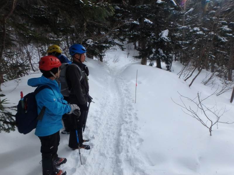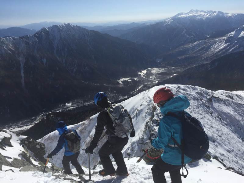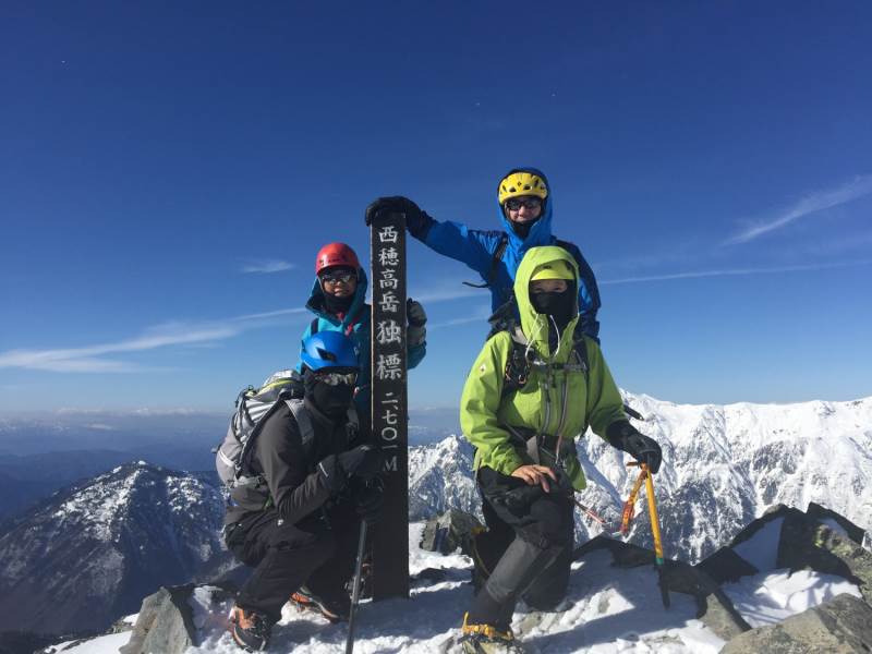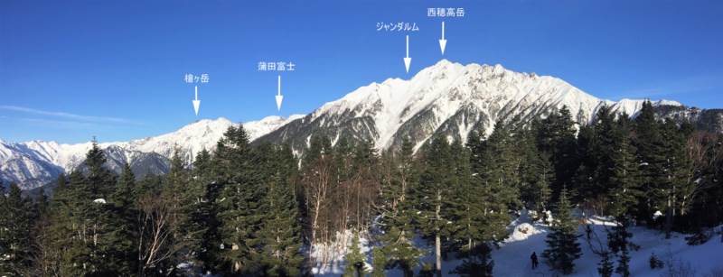 涸沢岳西尾根例会は新雪のラッセルが思うように進まずに撤退、翌日、西穂高岳独標へ行きました。