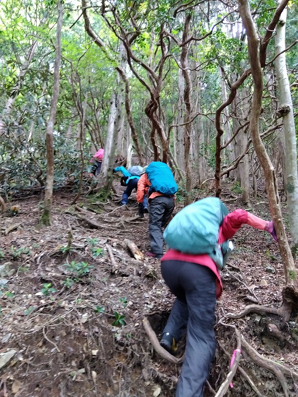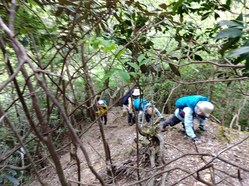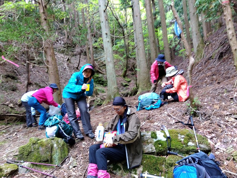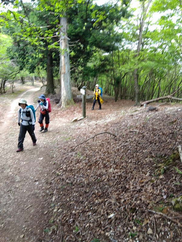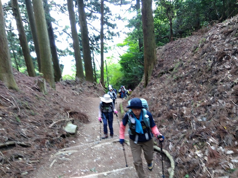 富士山/槍ヶ岳例会に向けたトレーニングを兼ね、今年の干支にちなんだ愛宕竜ヶ岳を目指し、途中クリン草に癒されながらの例会を企画した。天気予報は数日前から 午後より雨だったが、雨天練習に持って来いとLのみテンションUPのスタート。花売り小屋、愛宕トイレ手前のクリン草がきれいに手入れされやっと2段程、可憐に咲いていた。クリンソウの谷はクリンソウの株が非常に多く復活していたが 鹿により花芽は食べられており、花はまばら。竜ヶ岳登口から雨具をつけ急登を40分で登りきる。途中雨は降らず、あえてそのまま雨具を着たまま暑さを体験しながらの登り体感。今回のメンバーの足取りなら富士山/槍ヶ岳例会参加は問題なさそうだ。