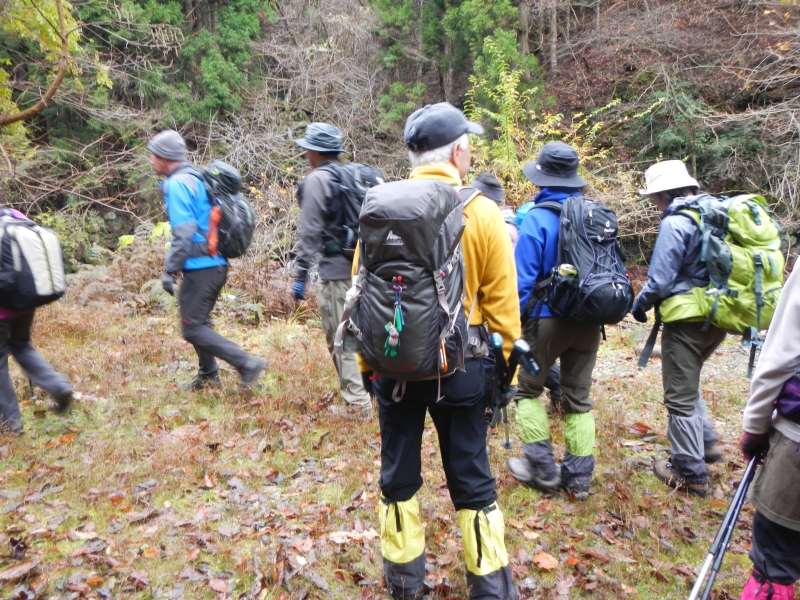 帰りは寺谷経由で降り渡渉せずに最近できたまき道から林道に出た。平に15時少し前についたが丁度小雨が降りだし、雨に降られずに例会を終えた。