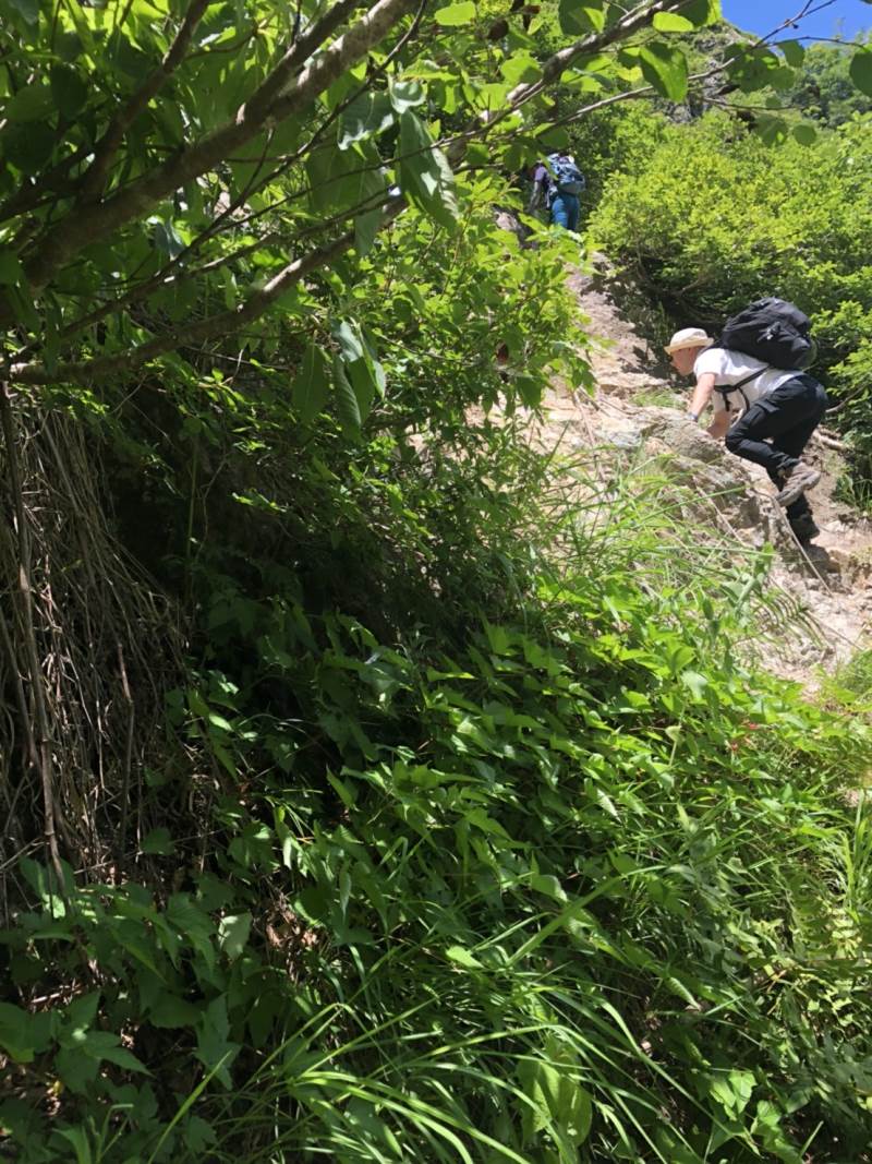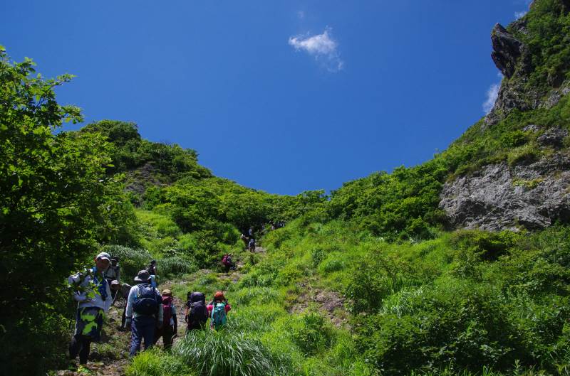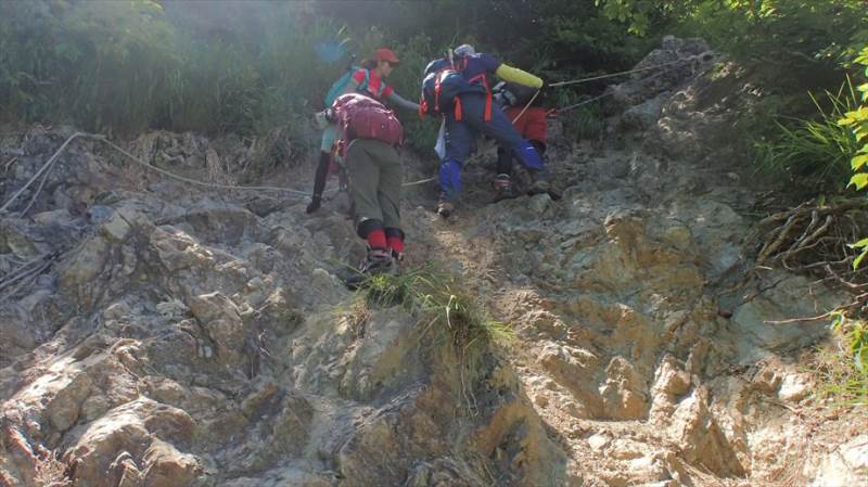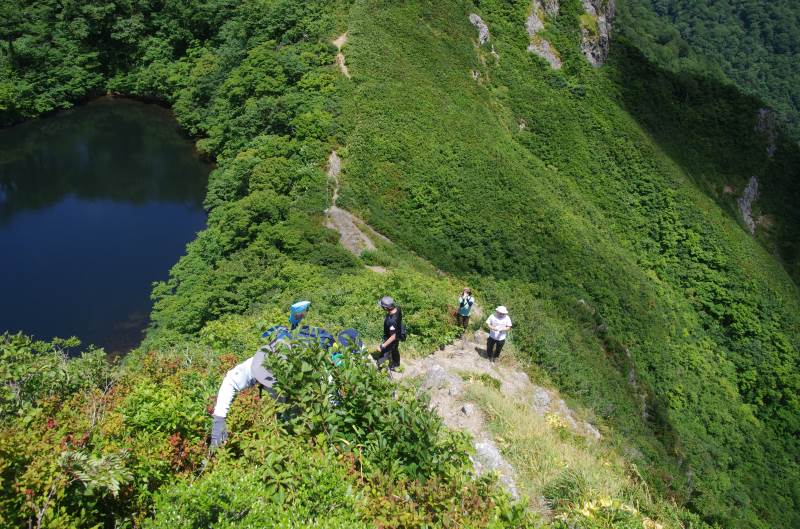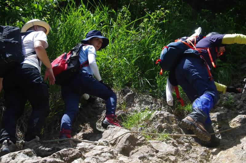 夜叉ヶ池まであと少しとなったところで、岩場が始まります。岩場が初めての方も多く、苦労している方もいましたが、その分、夜叉ヶ池を見た時の感動はひとしおでした。