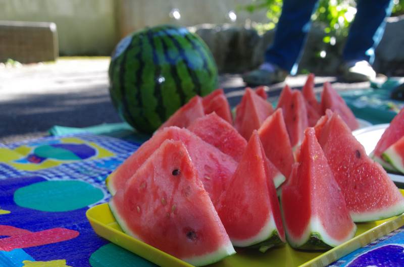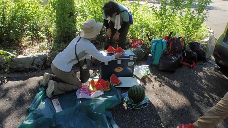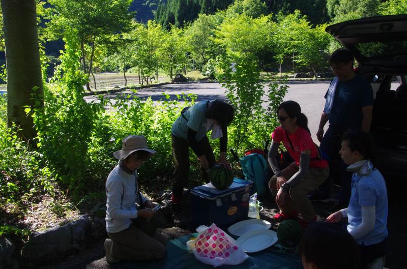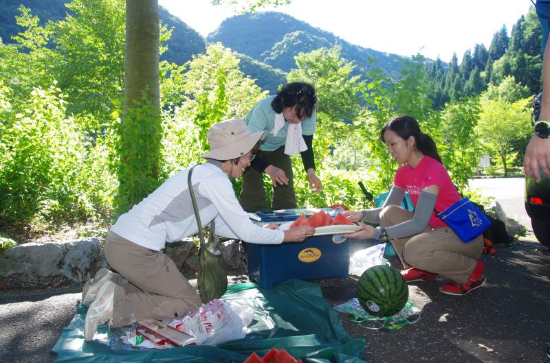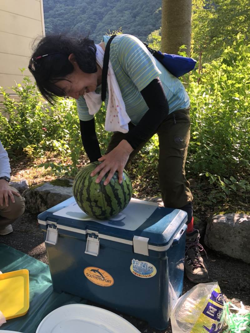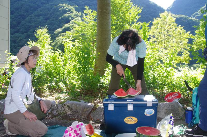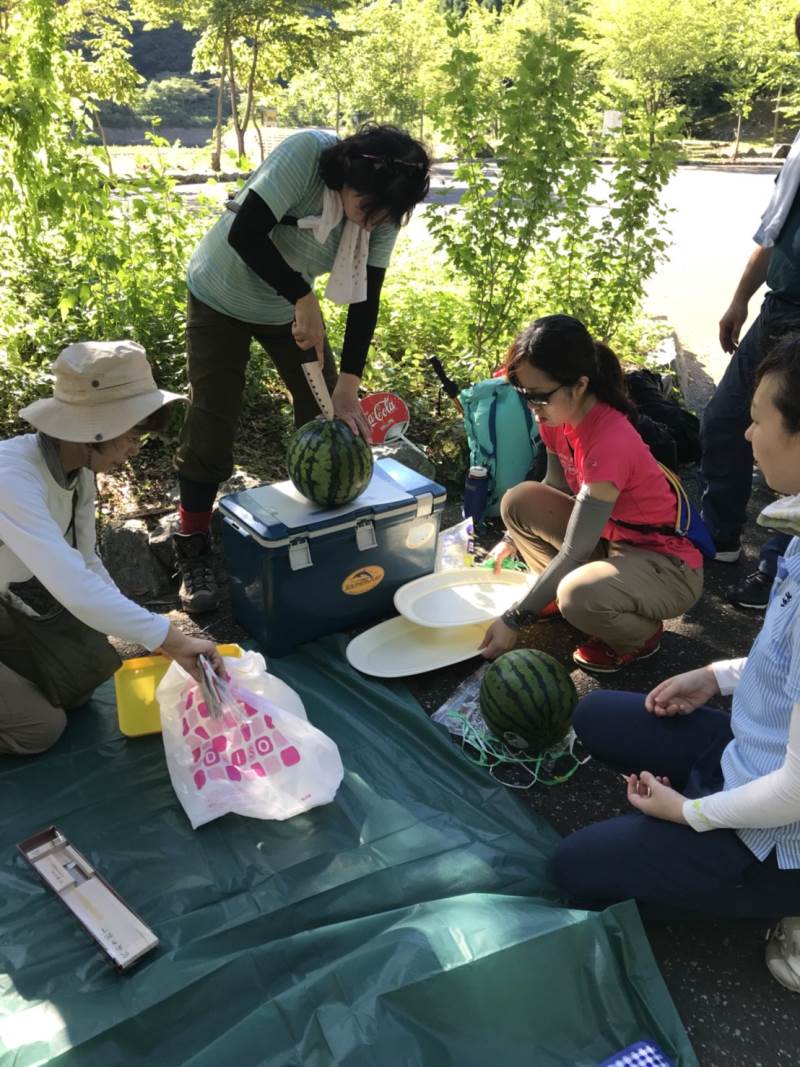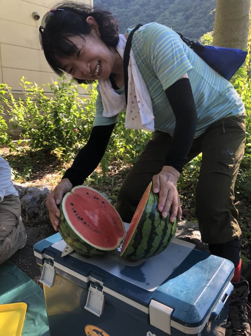 ※下山後、先輩から美味しいスイカをふるまっていただきました。ごちそうさまでした。