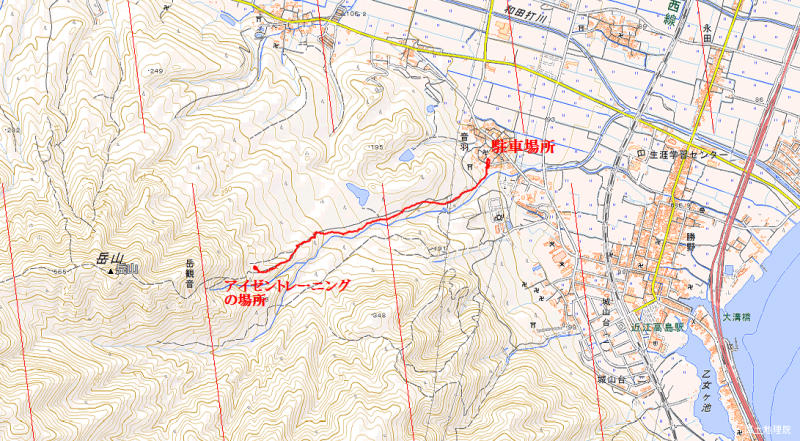 駐車場所からトレーニング場所までは、標高差約200m、歩行距離1.9m、約45分です。
