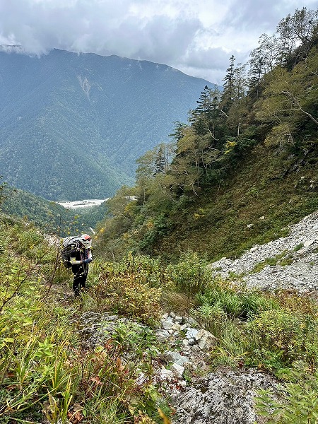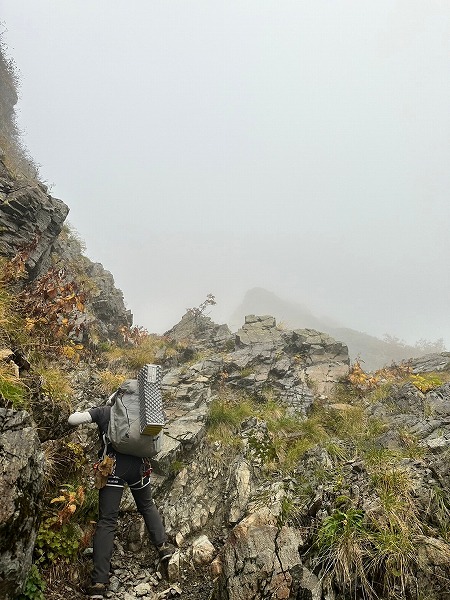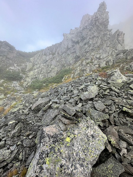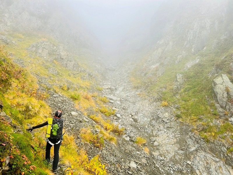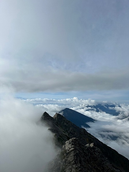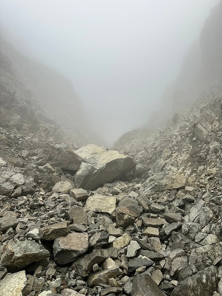 穂高連峰から槍ヶ岳にかけての山稜の東斜面には池が点在するのをご存知だろうか?天狗池、ひょうたん池、北穂池、奥又白池。今回は奥又白池からA沢を登り前穂高岳へのバリエーションルート。奥又白池までは藪笹漕ぎの急坂、A沢は岩雪崩の巣窟、ガスでうっすら浮かび上がる前穂高北尾根や明神岳を横目に不気味な雰囲気の中、登頂した。山頂では少しガスが晴れ、奥穂高方面がうっすら見える程度、早々に重太郎新道から上高地へ下山した。