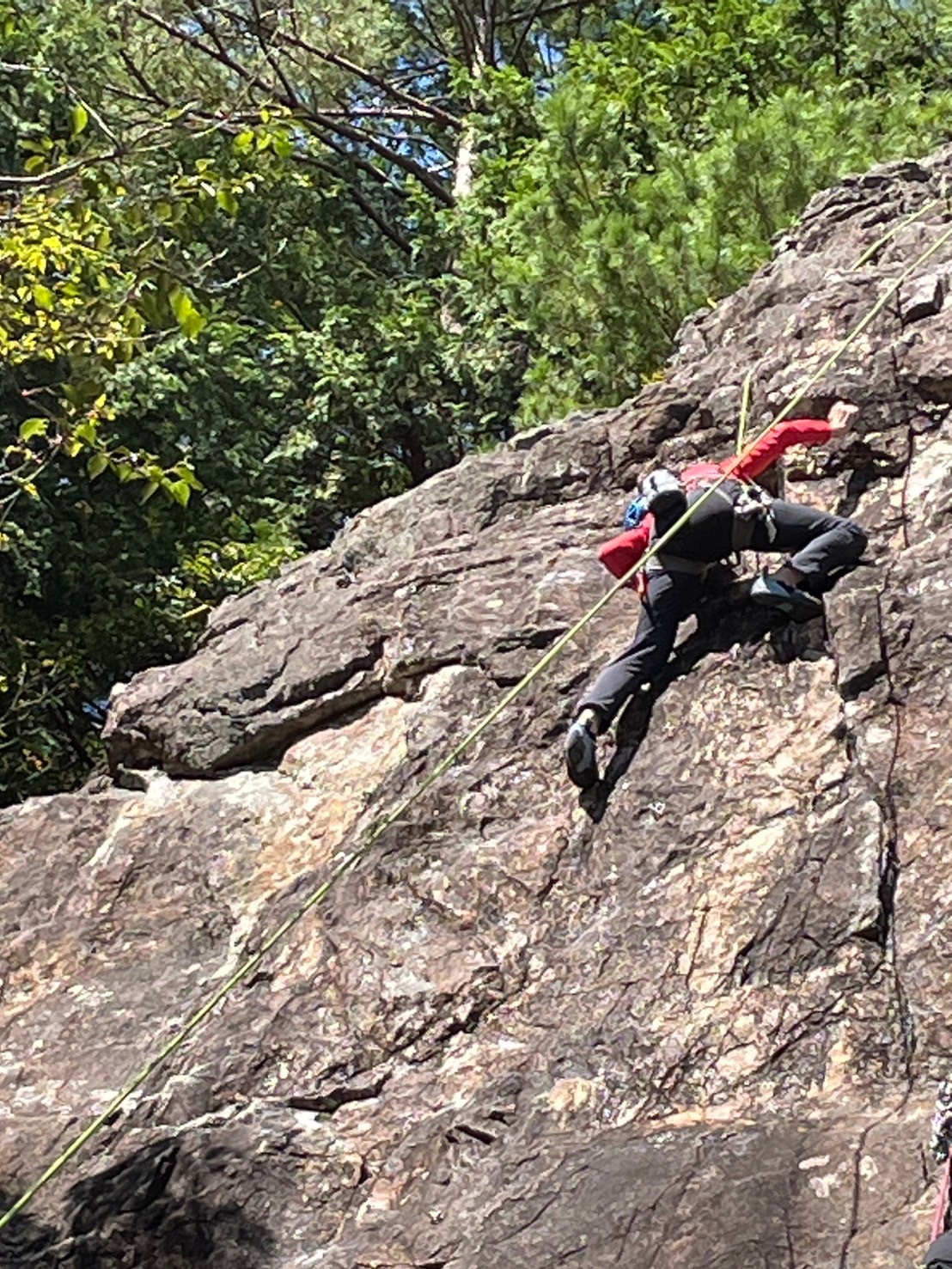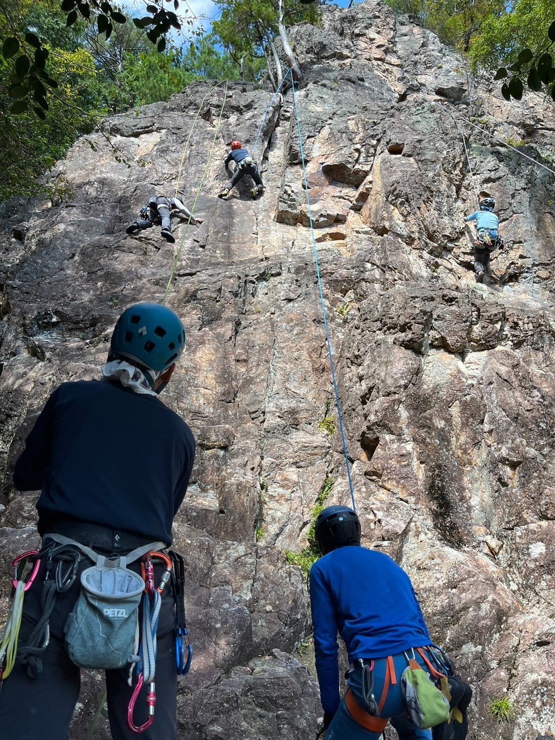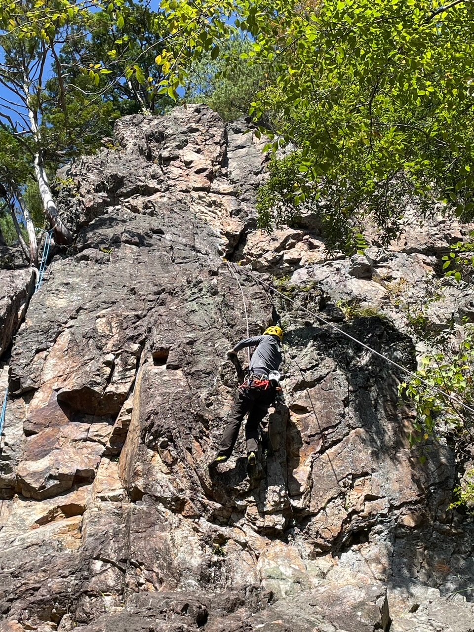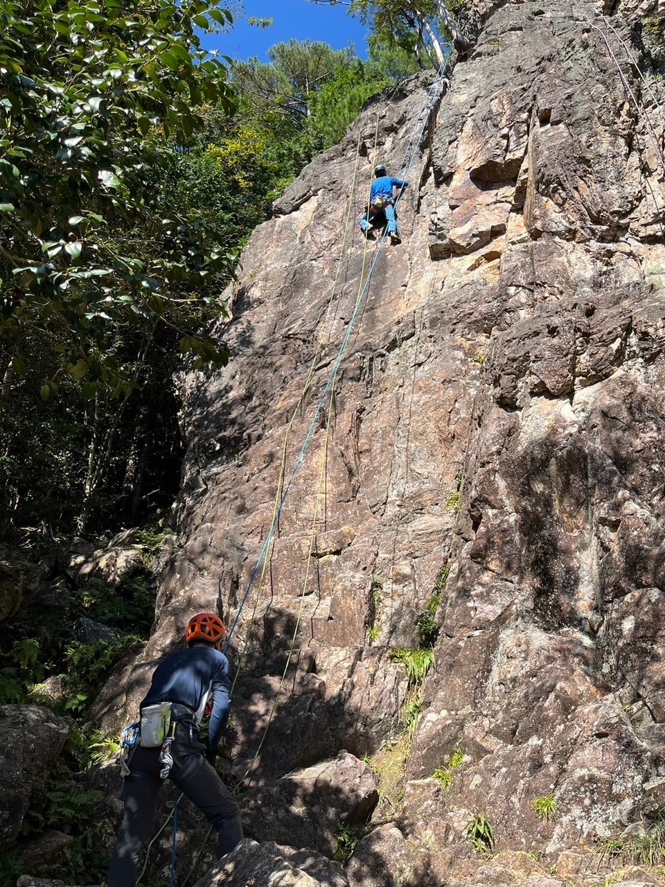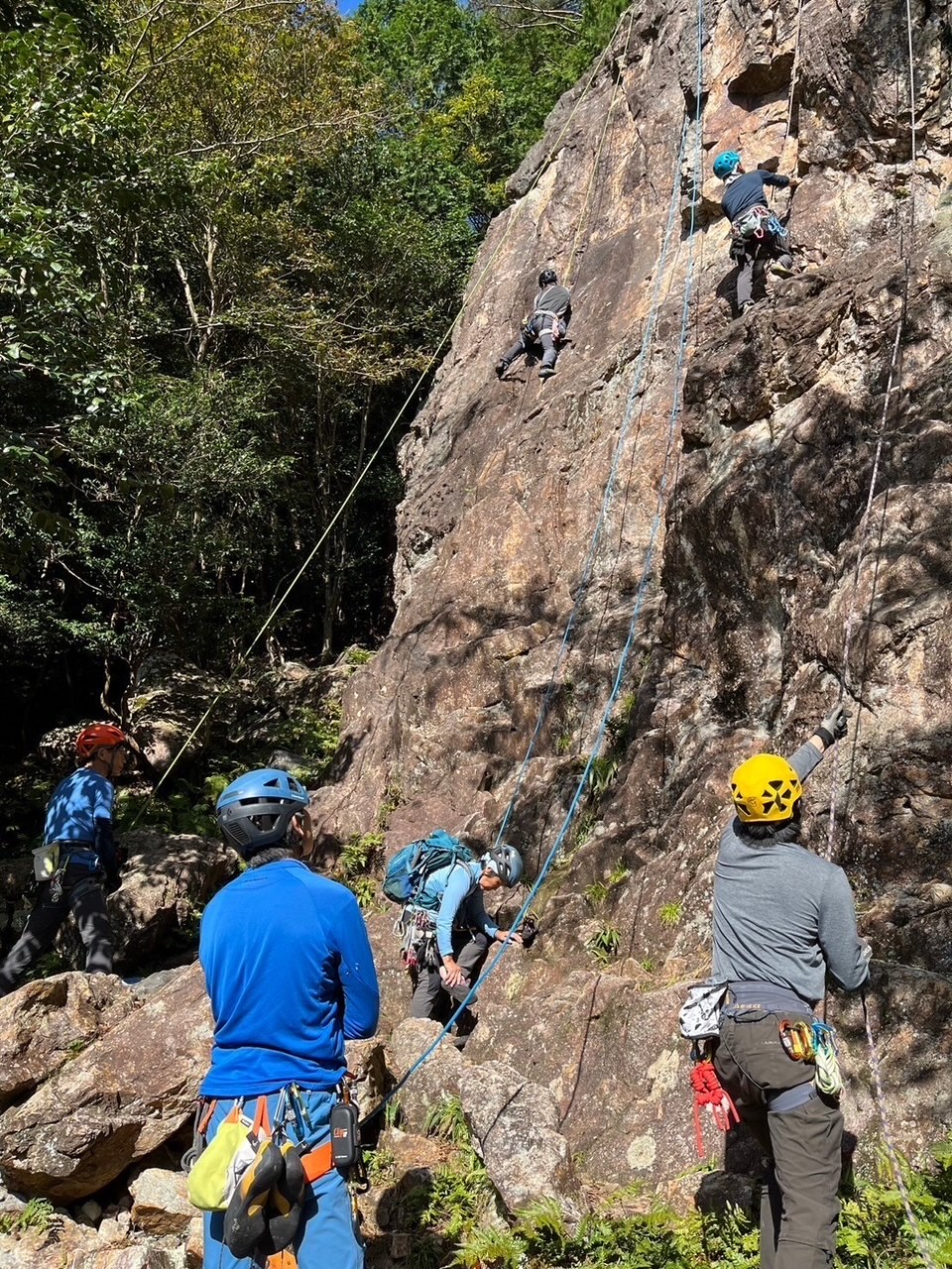 H氏とY氏でロープを3本はっていただき順番に練習開始 日当たりの良いところはポカポカあたたかいが木陰は少しヒンヤリしてやっと秋らしくなってきてクライミングするにも気持ちのいい季節がやってきました