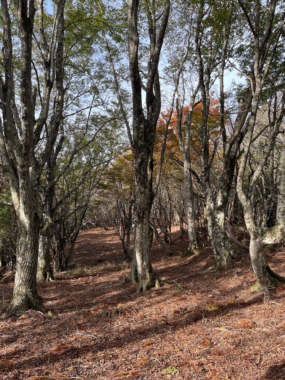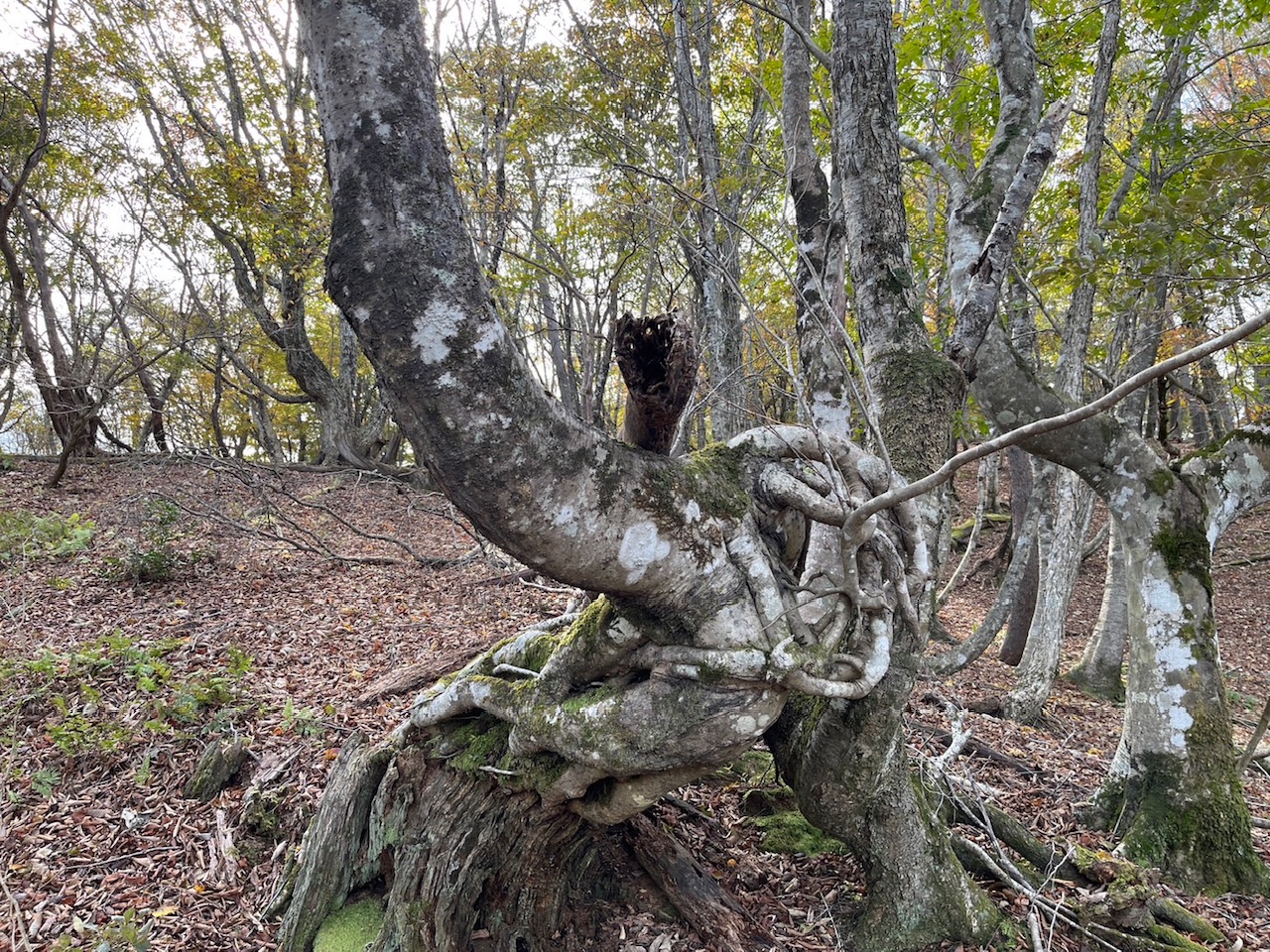 五波峠は開けた峠で、ここまで舗装された林道で来ることが出来ました。ブナの紅葉を期待したのですが、もうすでに葉が落ちていました。国境稜線は大きな尾根で多くブナを見ることが出来ます。いくつものピークを越えて八ヶ峰に到着。日本海が見えます。百里ヶ岳を眺めながら昼食を摂り、久々にのんびりとした時間を過ごせました。新緑の時期に再訪をしたいですね。