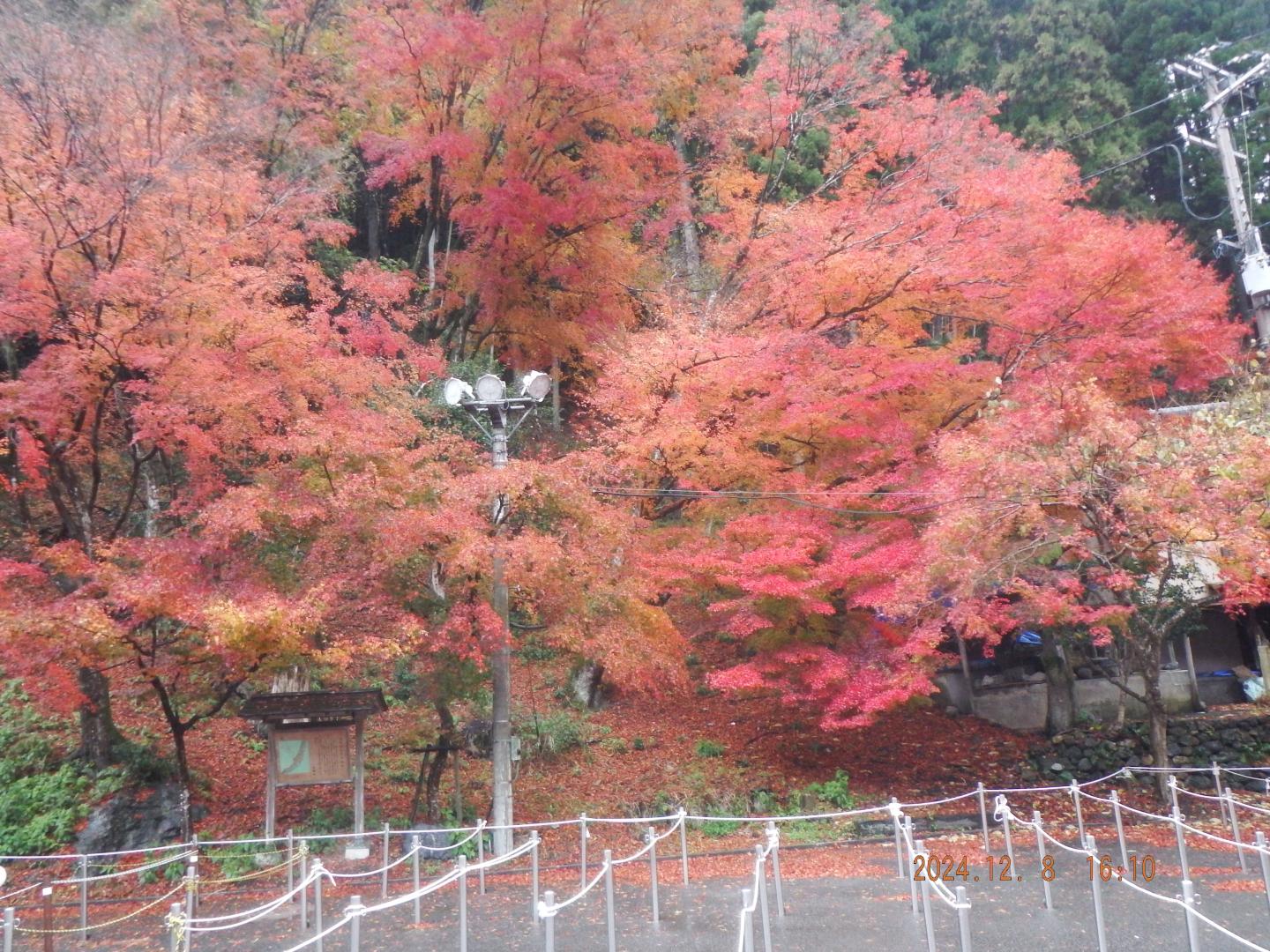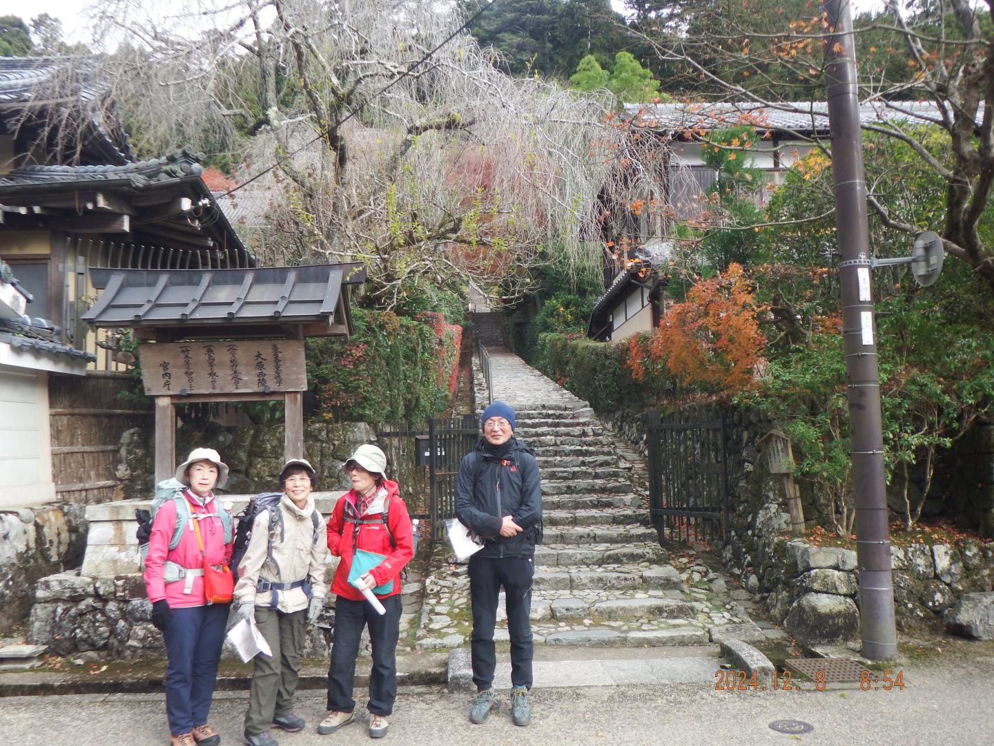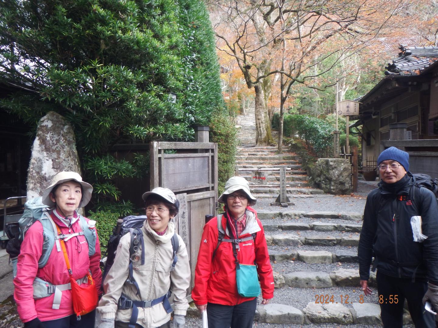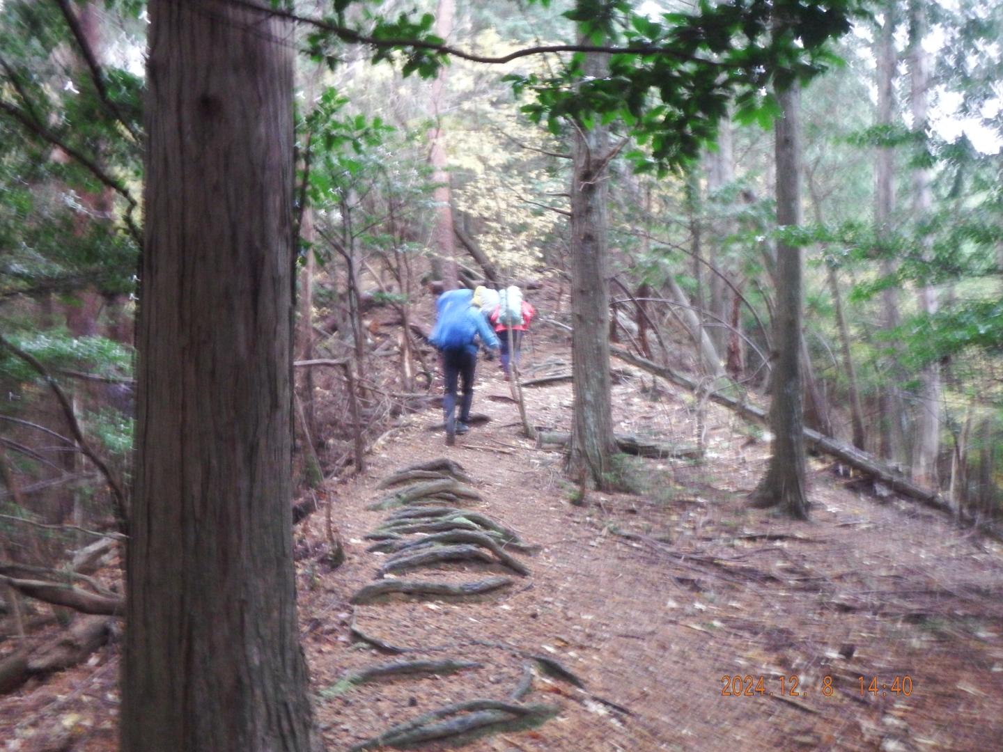 2024/12/08(日) 晴れのち曇り/午後 雨時々雪 参加者 男2名女3名 計5名 今年はまだまだ紅葉がきれいですが、大原方面のバスの混雑もなく無事寒空の中出発。寂光院を過ぎたあたりで衣服調整。途中地図上にある多数の尾根道からの下山道は廃道になっているようだ。竜王岳からみえる鞍馬寺は雨とガスでかすんでおり残念でしたが、きれいな紅葉は見られました。