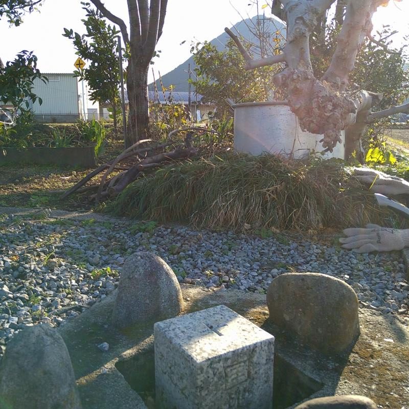 三上山の三角点は山頂になく、田んぼの中、農地改良記念碑の横にあるという情報を得て、