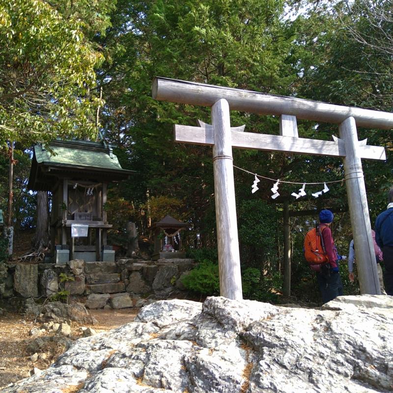 登山前に確認しに行く。御上神社でお参りを済ませ、天保義民碑を見て裏登山道から山に入る。樹林帯をひたすら登り、女山に寄った後、鳥居と祠、磐座のある奥宮から山頂へ。