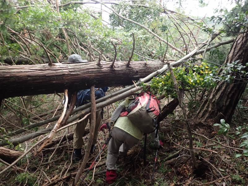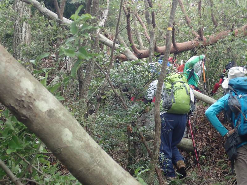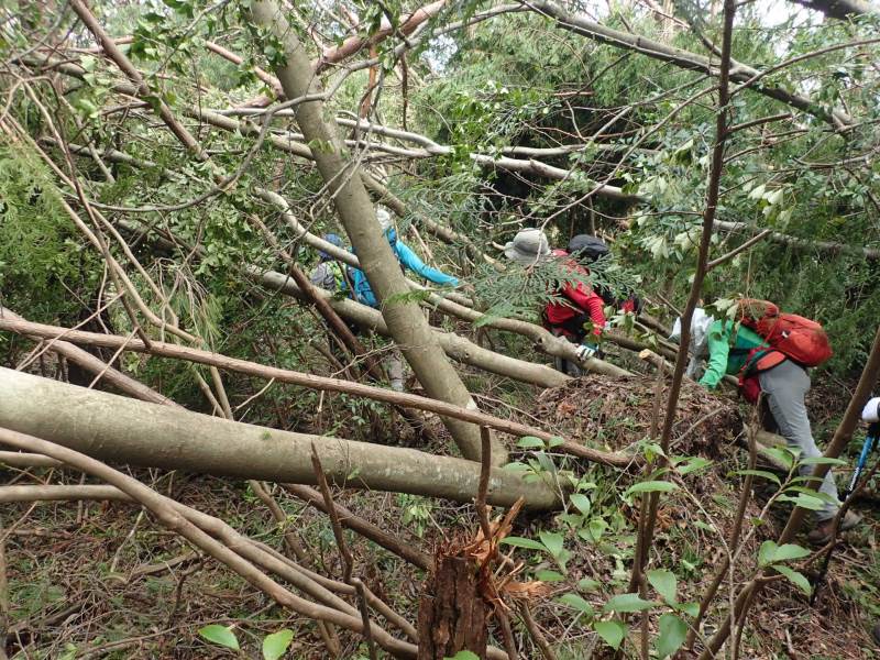 体力度★の例会だったはずが、倒木だらけの悪路で、★★(ひょっとしてそれ以上)の少しハードな、非常に面白い山行になった。