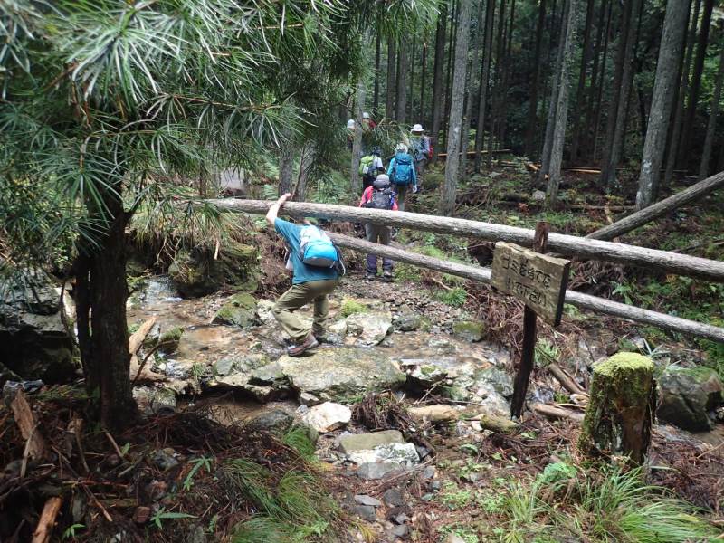 倒木を乗越・くぐり抜の連続で時間がかかり、結局沢山から元来た道を引き返し、菩提道バス停より帰る事に・・・・