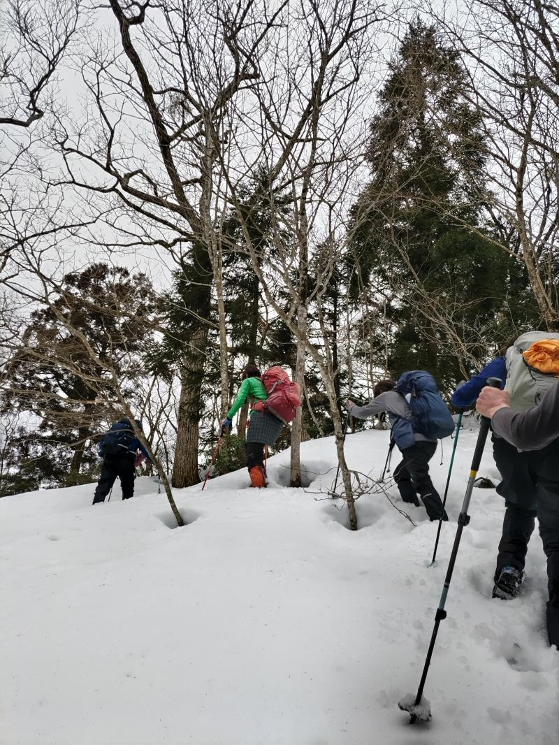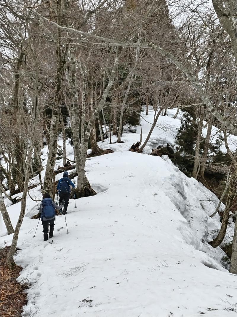 「栃生登山口~白倉岳・鷹ケ峰~朽木岩瀬」の山行予定であったが、時間切れで村井登山口に降りた。重い雪のうえに予想以上の積雪量で時には腰までのラッセル。トレースはほぼ無くマーキングも少なく時間を要した。11㎞弱・8時間半で周回山行を終えた。(NY)