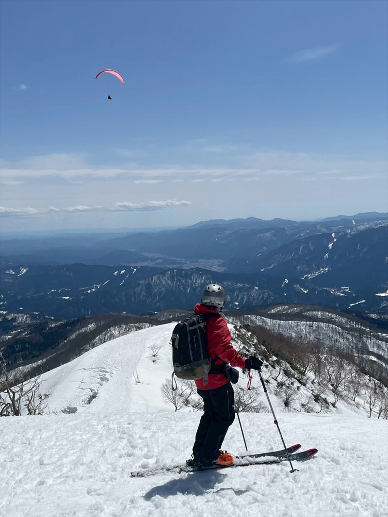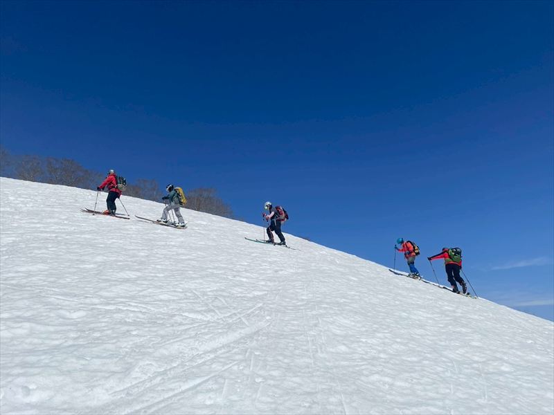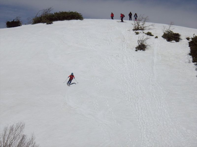 今年は本当に雪が多い。大日ヶ岳頂上の仏様も完全に雪の中でした。お天気に恵まれて、白山をはじめ360度の展望で、山スキー初級者もベテランも楽しい春山スキーになりました。ただこのところの高温で大日ヶ岳の尾根も沢山のグライドクラックやブロック雪崩の跡がありました。今年は雪が多い分、特に注意しましょう!(HM)